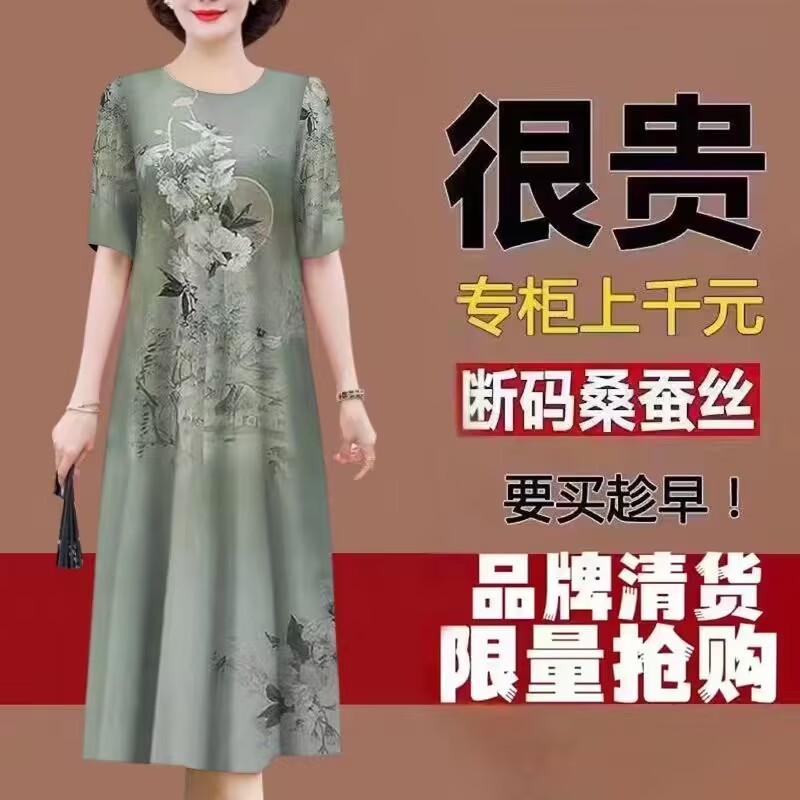 清仓香云纱高档真丝连衣裙女2023年大牌桑蚕丝中长款中年妈妈裙子