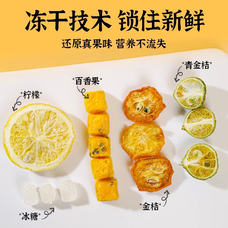 金桔柠檬百香果水果茶冲饮泡水喝冷泡免煮水果茶奶茶店独立小包装
