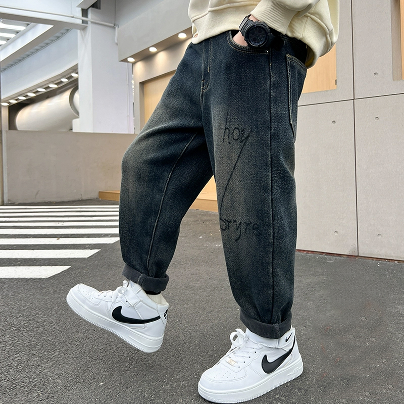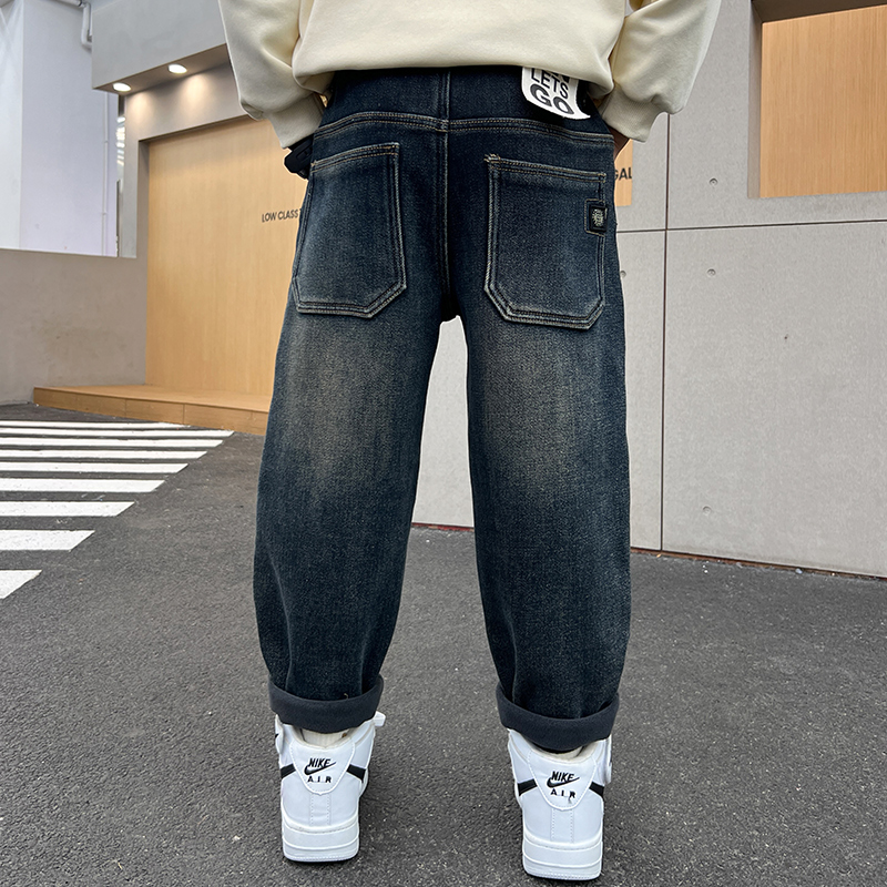 儿童装男童加绒裤子秋冬款2025新款加厚休闲牛仔男孩冬季中大童潮