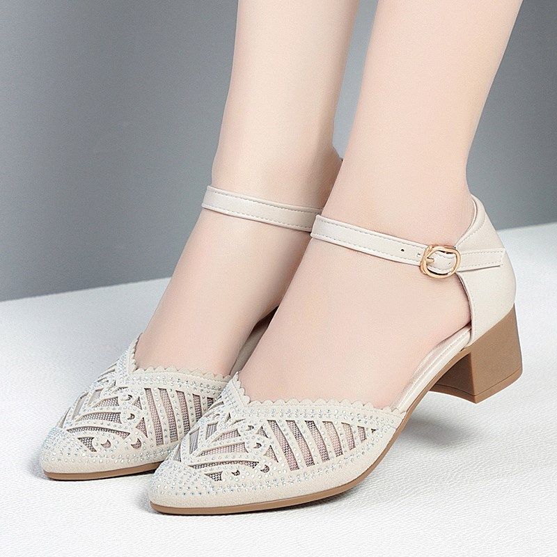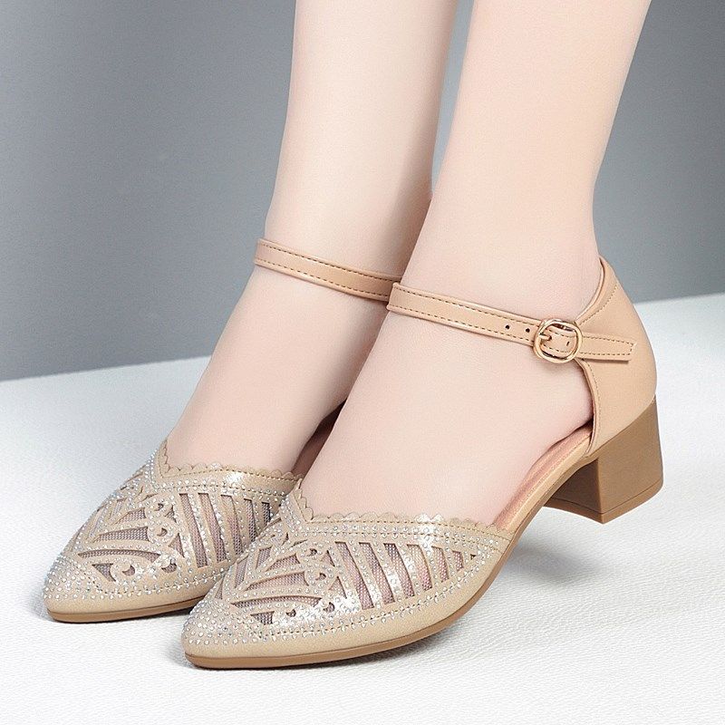 包头凉鞋女2025年新款夏季真皮软底镂空中跟中老年妈妈鞋中年皮鞋