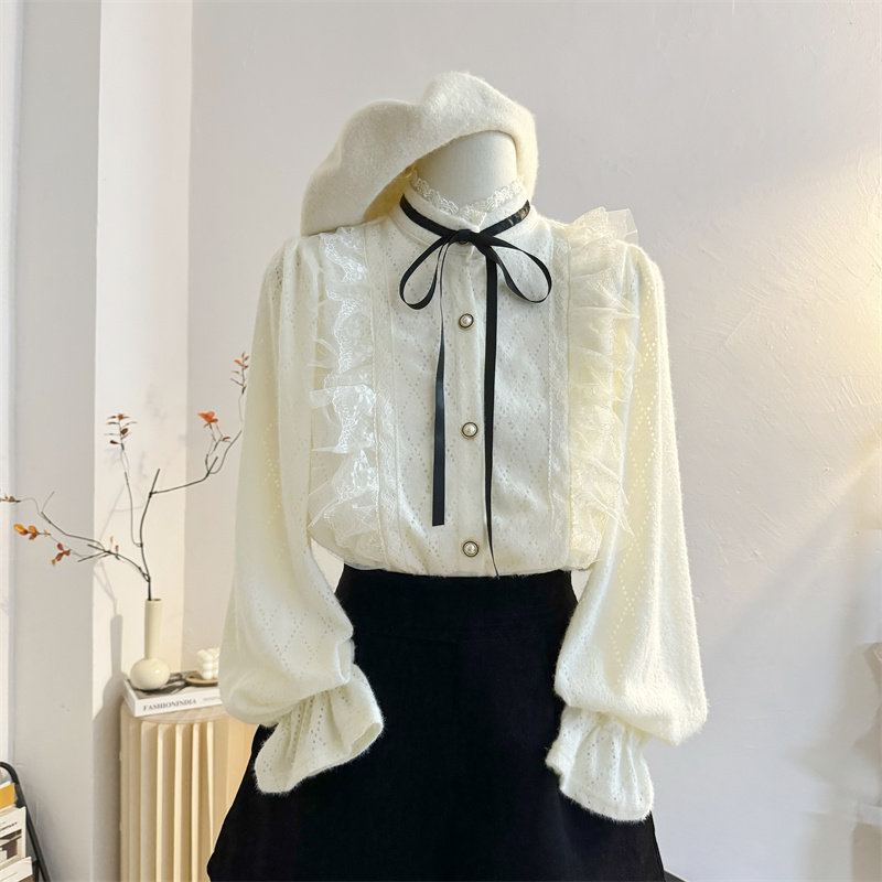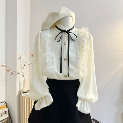 气质长袖蕾丝花边立领衬衫荷叶边