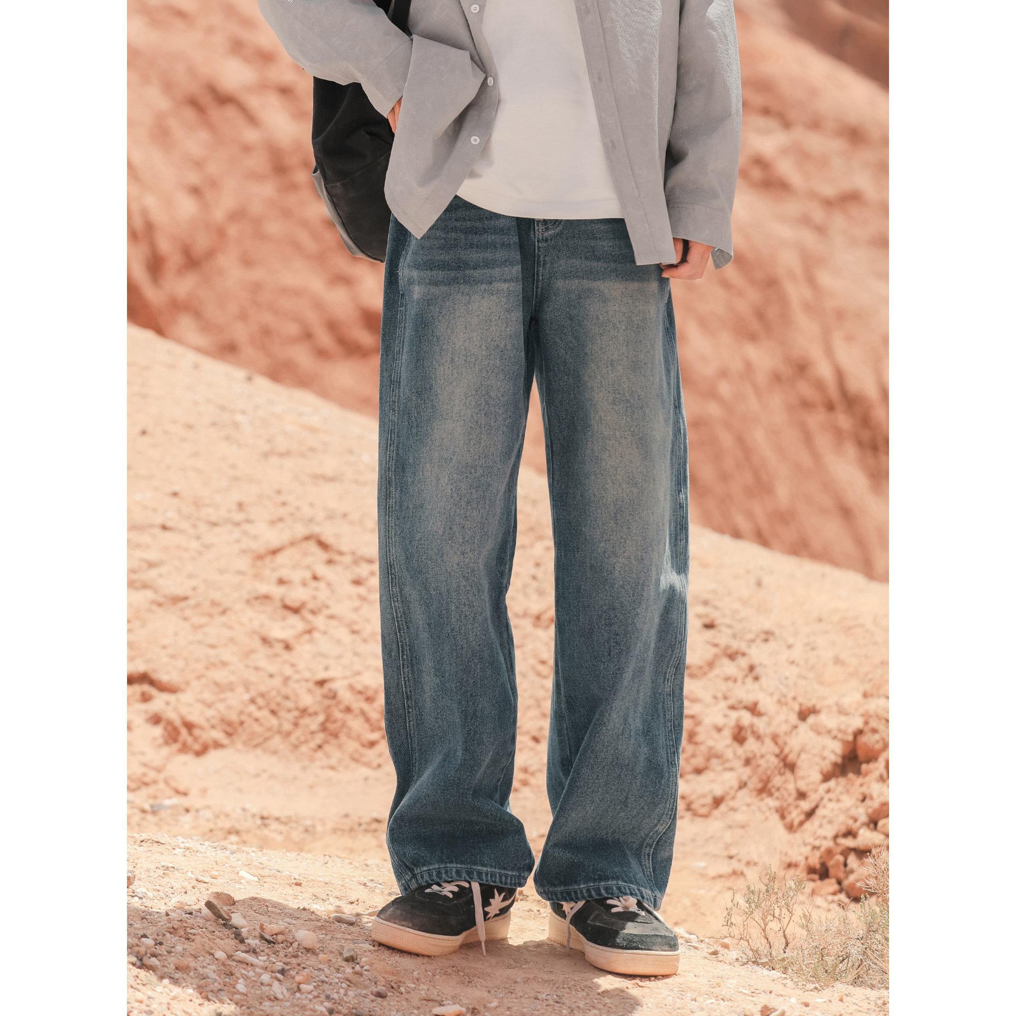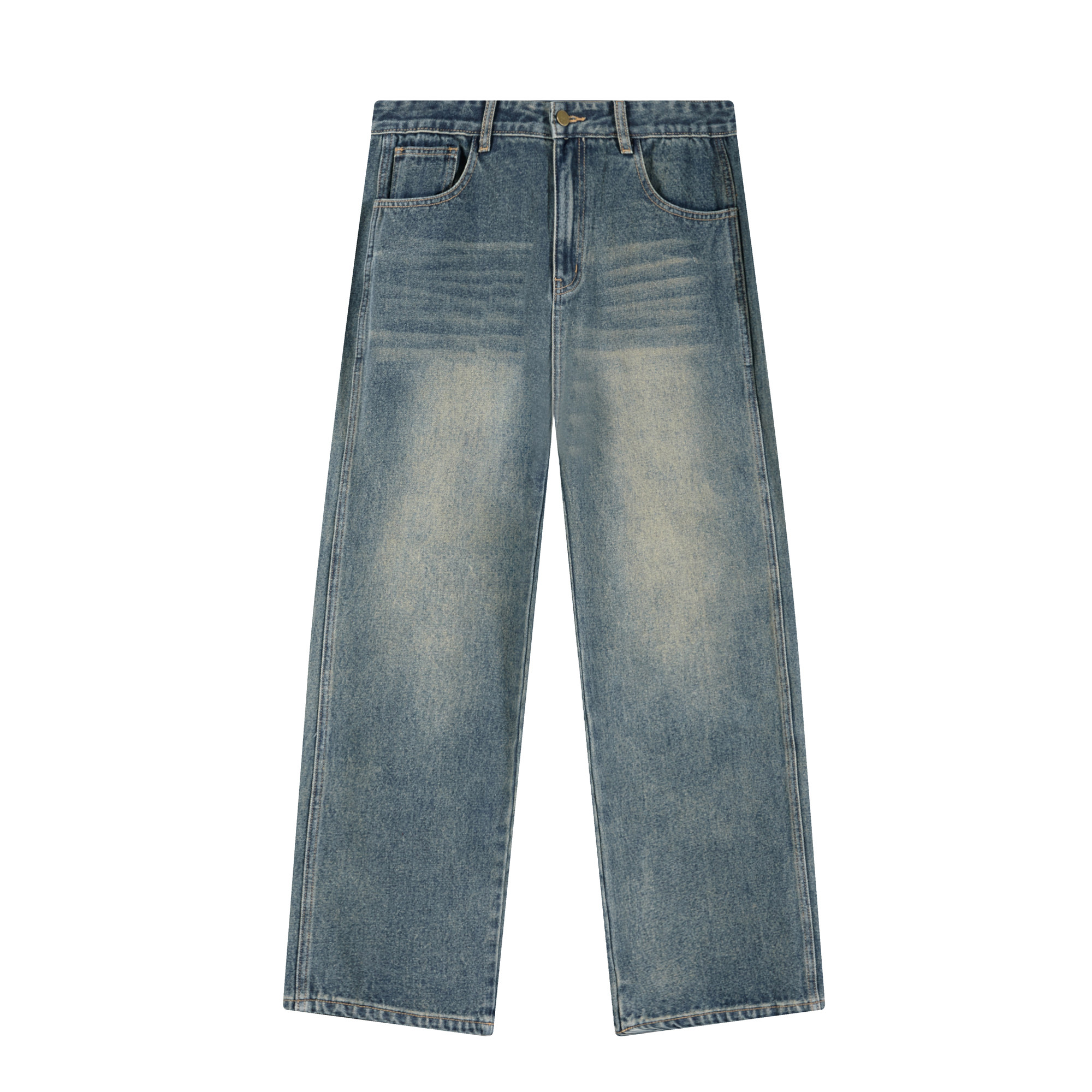 吕小虎美式猫须马骝喷洗牛仔裤