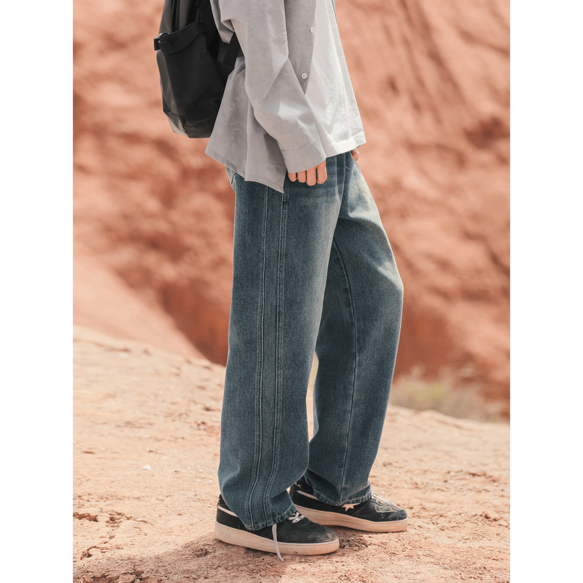 吕小虎经典猫须马骝水洗牛仔裤男士上班通勤直筒裤春秋耐磨长裤子