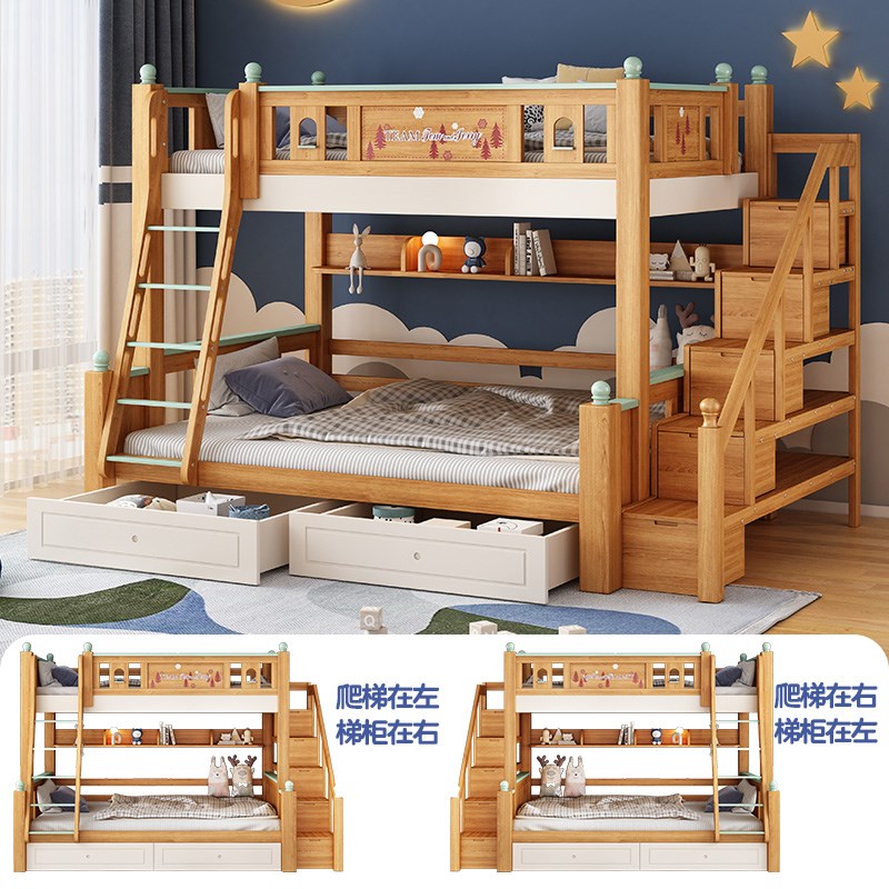 儿童床上下床双层两层高低子母床儿童房小户型多功能组合床实木