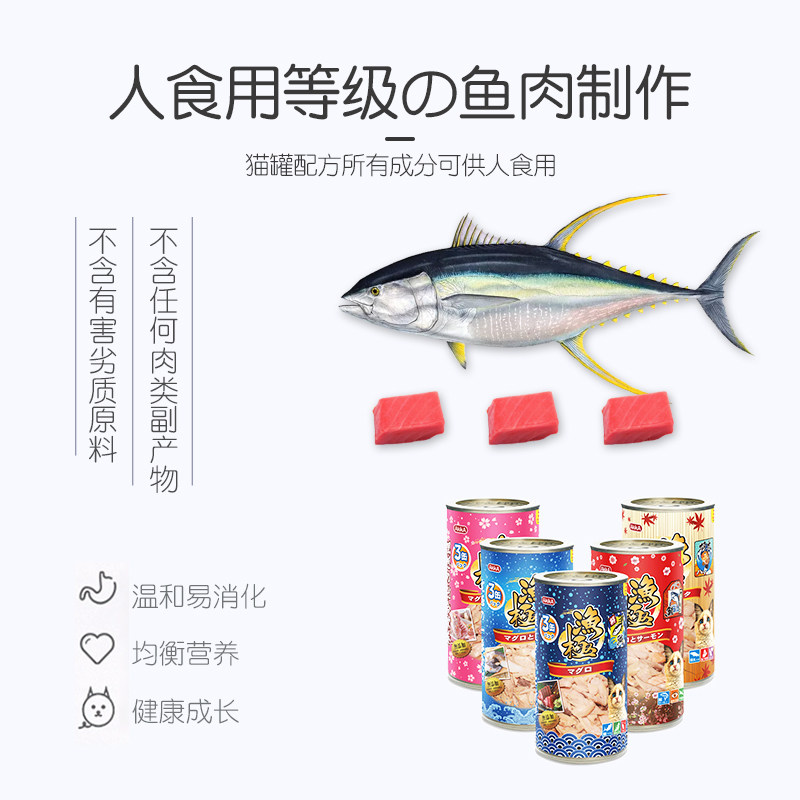 渔极ak宠物猫罐160g*6罐鲭鱼金枪鱼三文鱼成幼猫零食罐头泰国进口