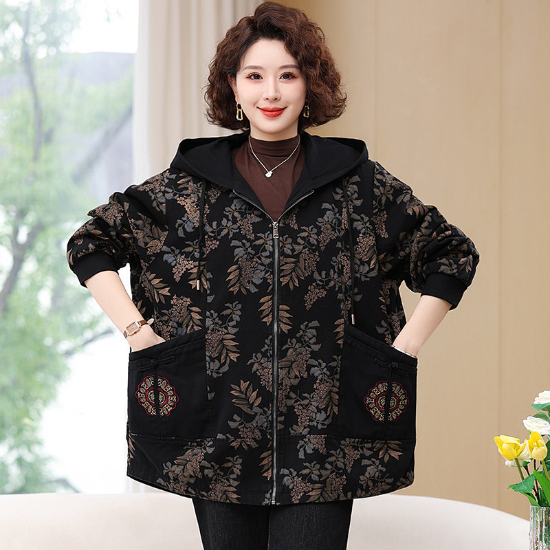 休闲妈妈装牛仔加肥加大码外套