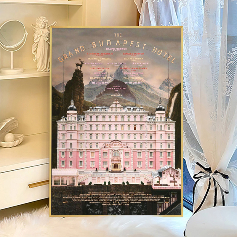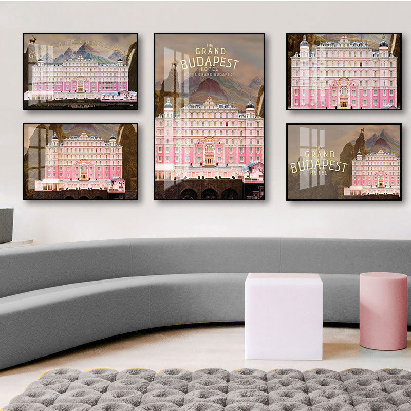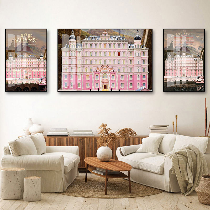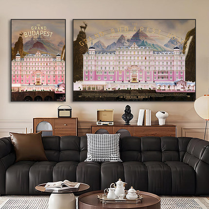 布达佩斯大饭店装饰画法式城堡粉色客厅挂画卧室房间复古建筑壁画