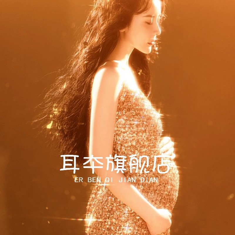 新款孕妇拍照服装金色亮r片连衣裙孕期妈咪礼服写真艺术照私房摄