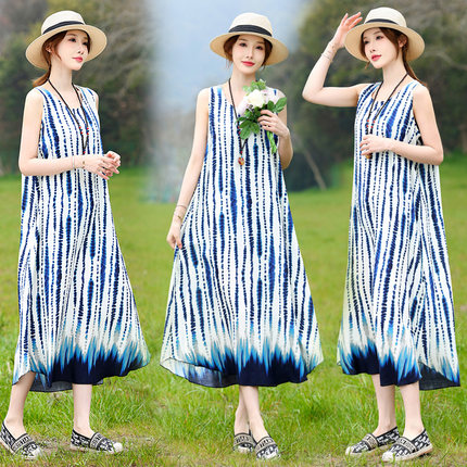 中老年背心棉绸膝人连衣裙女夏季