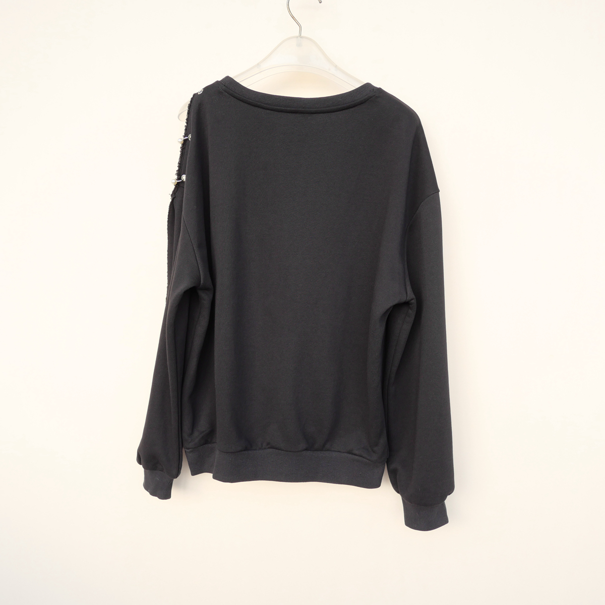 拉系SML撤柜正品 女春秋棉圈舒柔摩登宽松长袖套头卫衣5A8182黑色