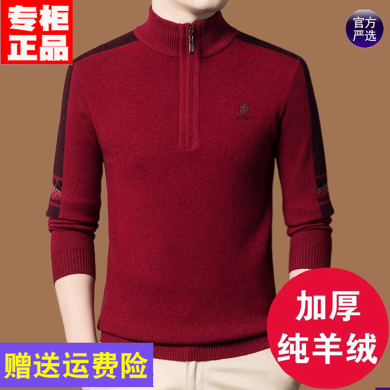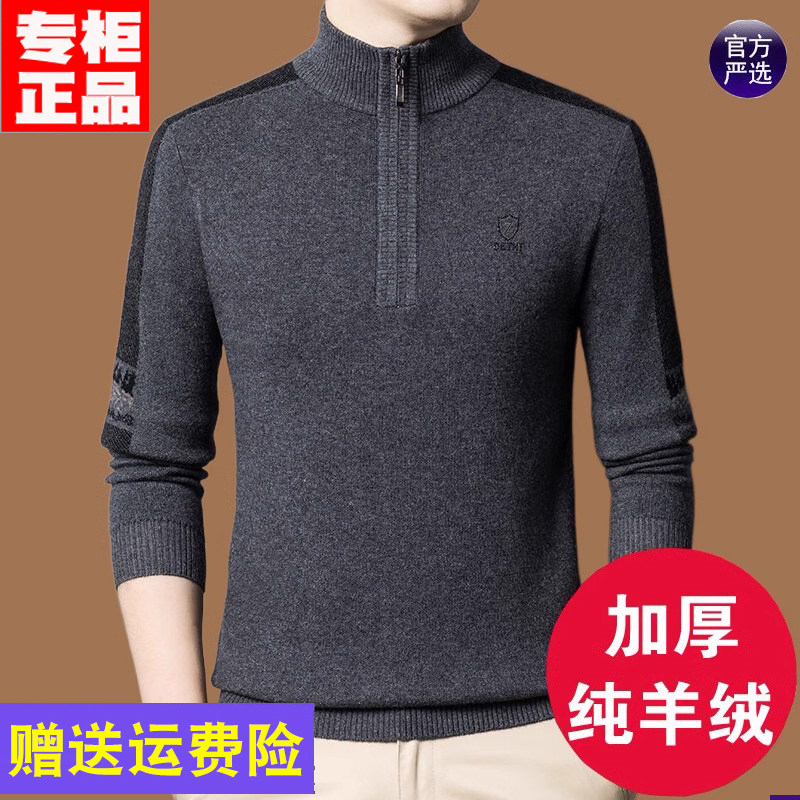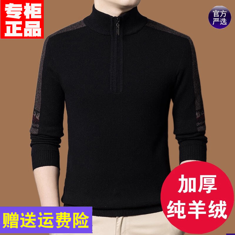 毛衣冬季半高拉链领加厚100%纯羊绒衫男士保暖中年商务休闲针织衫