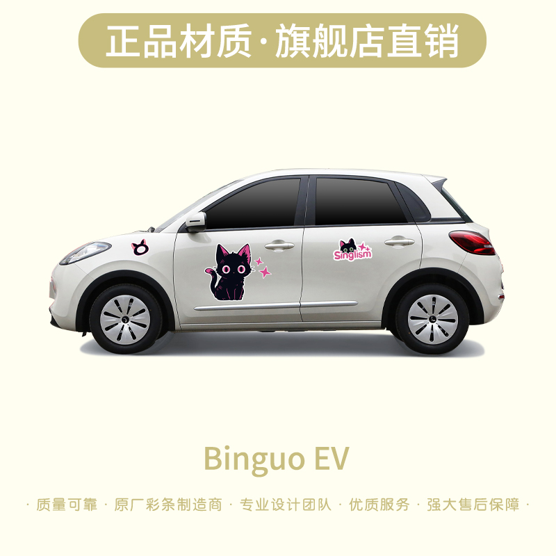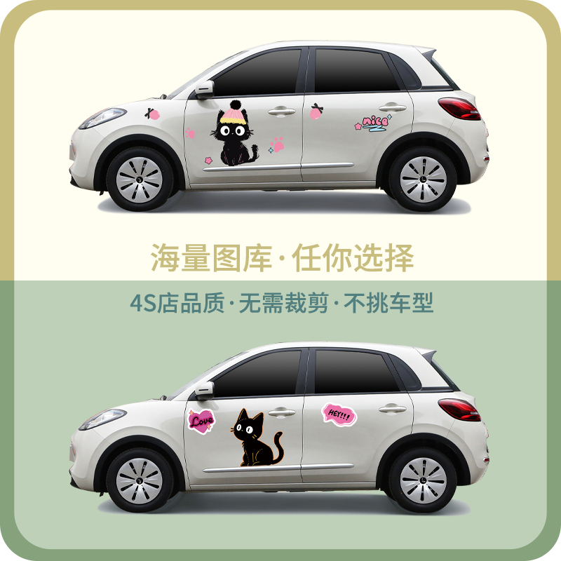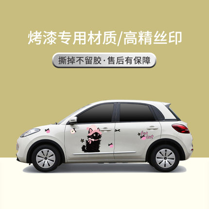 可爱黑猫五菱缤果车贴五菱改装车身贴新能源个性卡通划痕创意装饰