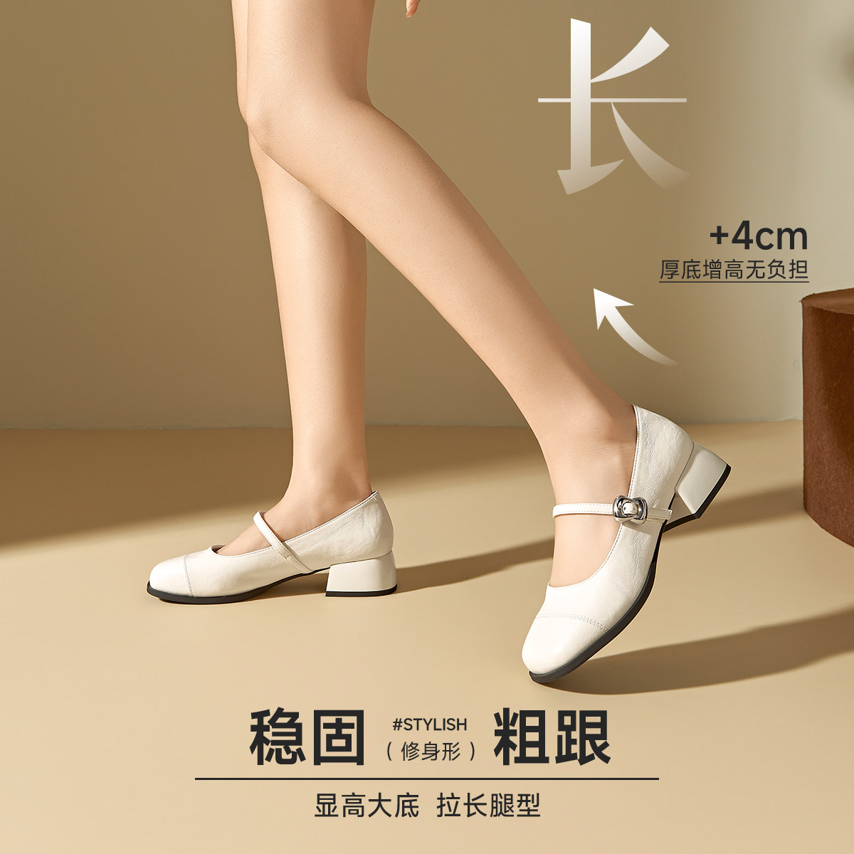 戈美其商场同款玛丽珍鞋女2025新款春季白色小香风鞋子厚底单鞋女