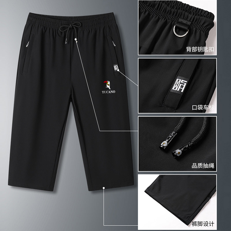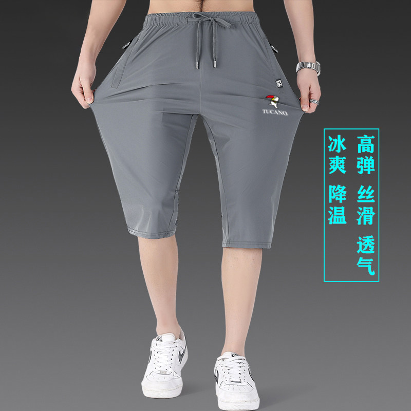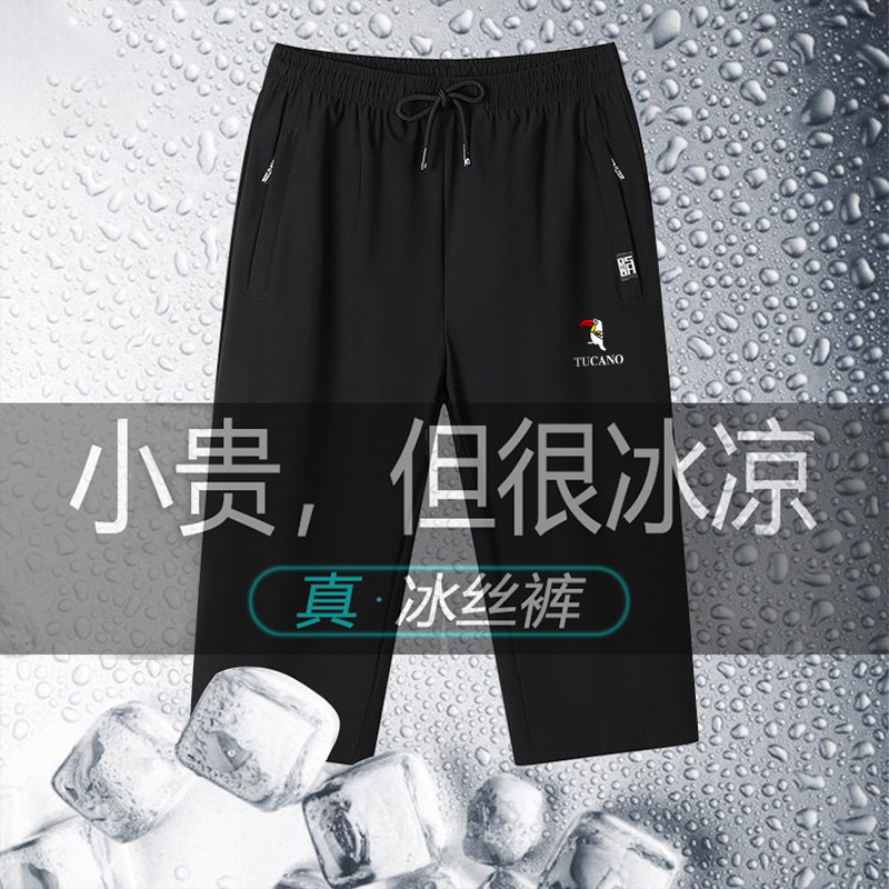 啄木鸟冰丝七分裤男士夏季宽松薄款7分裤运动休闲直筒速干短裤潮