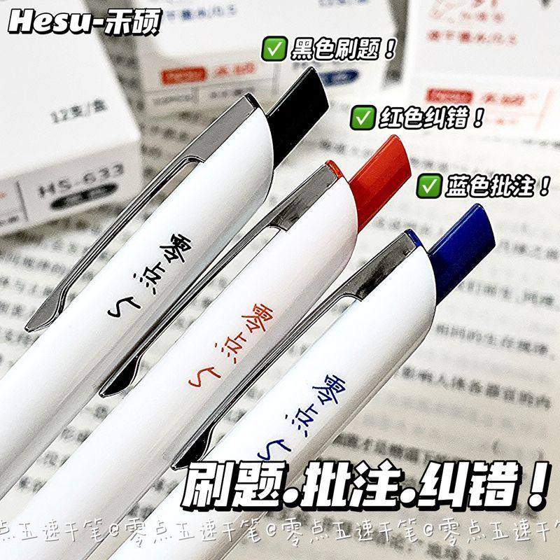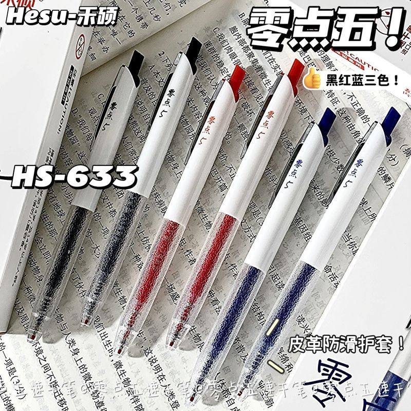禾硕HS-633零点5系列简约按动中性笔ST加强型0.5MM速干防滑护套学生刷题笔黑蓝红中性油墨顺滑办公签字笔