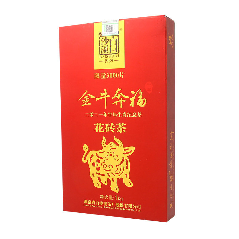 黑茶湖南安化正品白沙溪牛年生肖花砖茶1kg限量发售