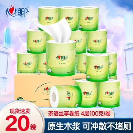 心相印卷纸有芯卷筒纸4层100g克小规格便携卫生纸巾家用擦手厕纸