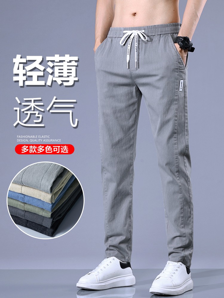 夏季薄款天丝牛仔裤男士宽松直筒休闲裤男款超薄冰丝抽绳夏天长裤