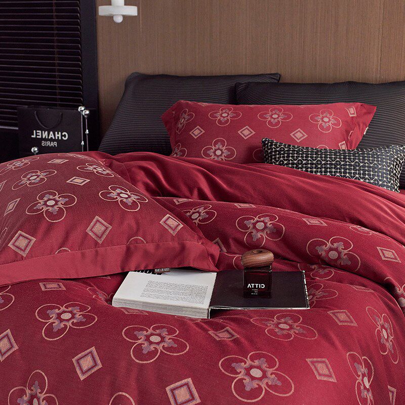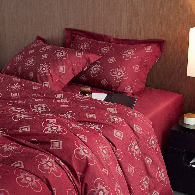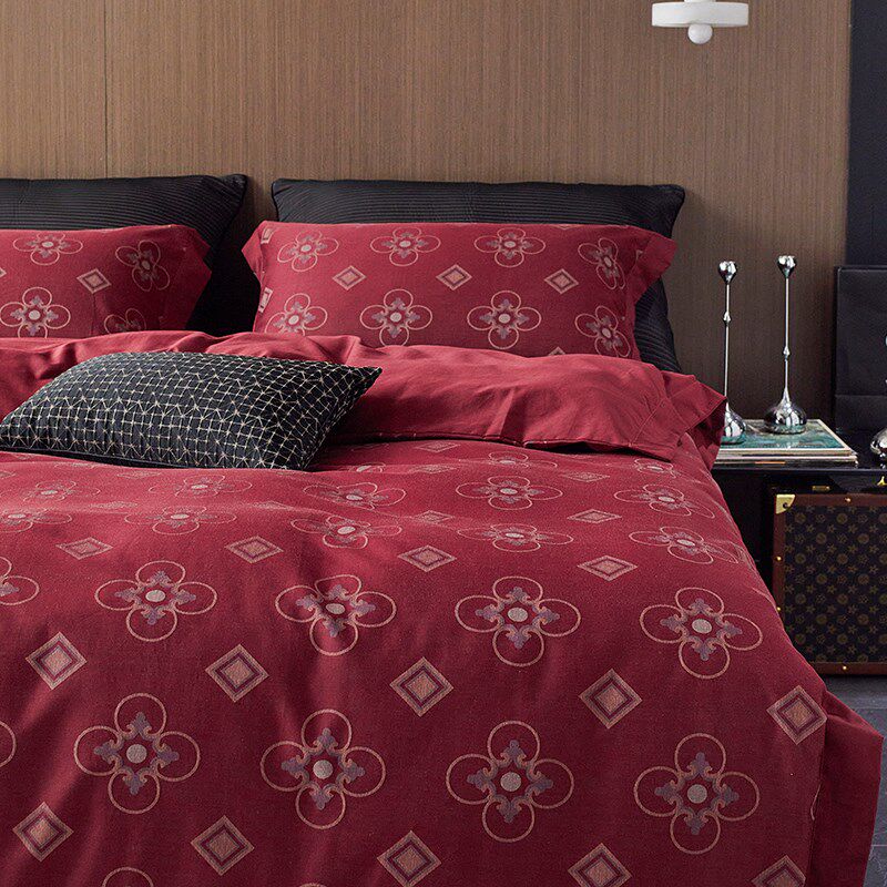 结婚庆新婚嫁喜i被丨纯棉全棉四件套红色床单被套复古中式风床品