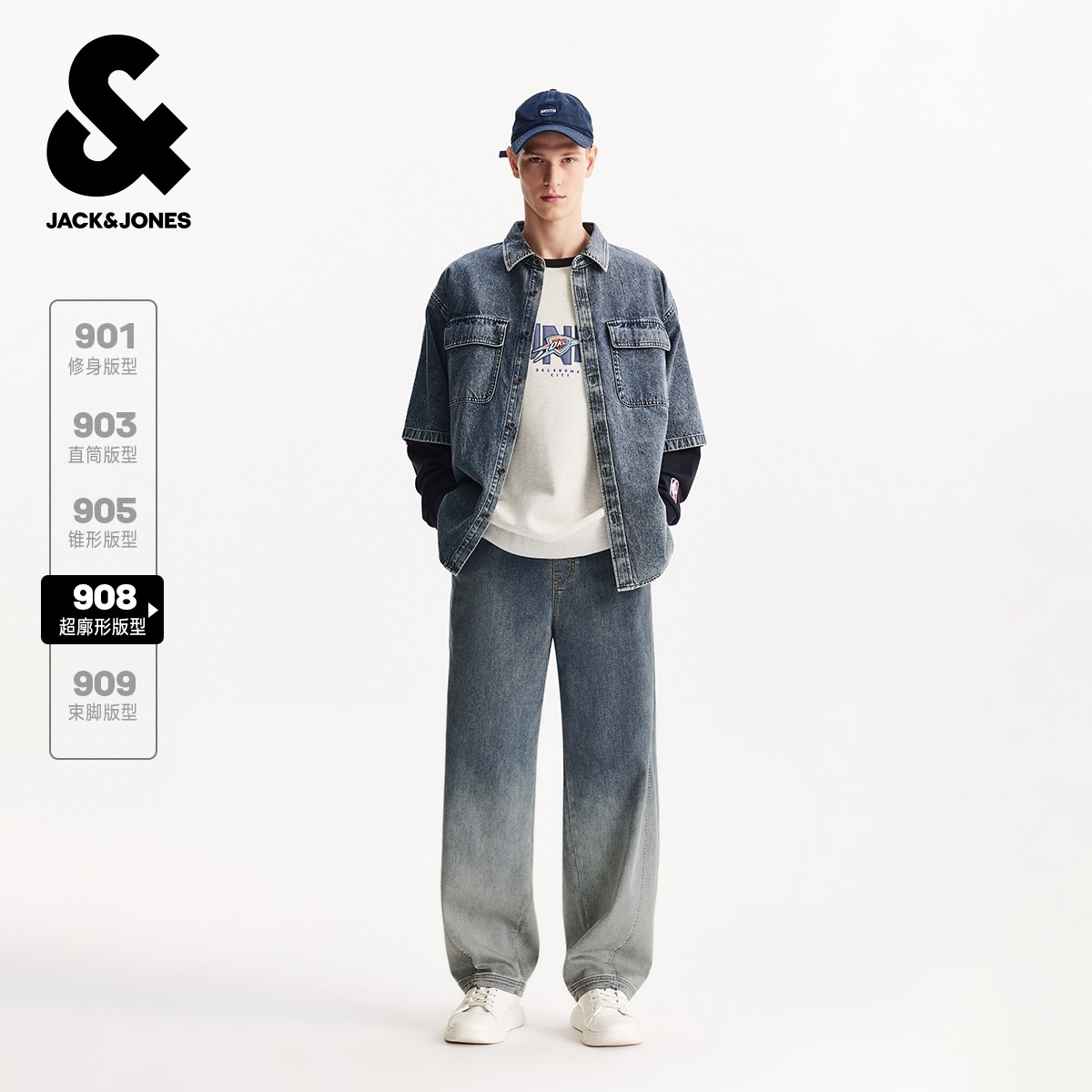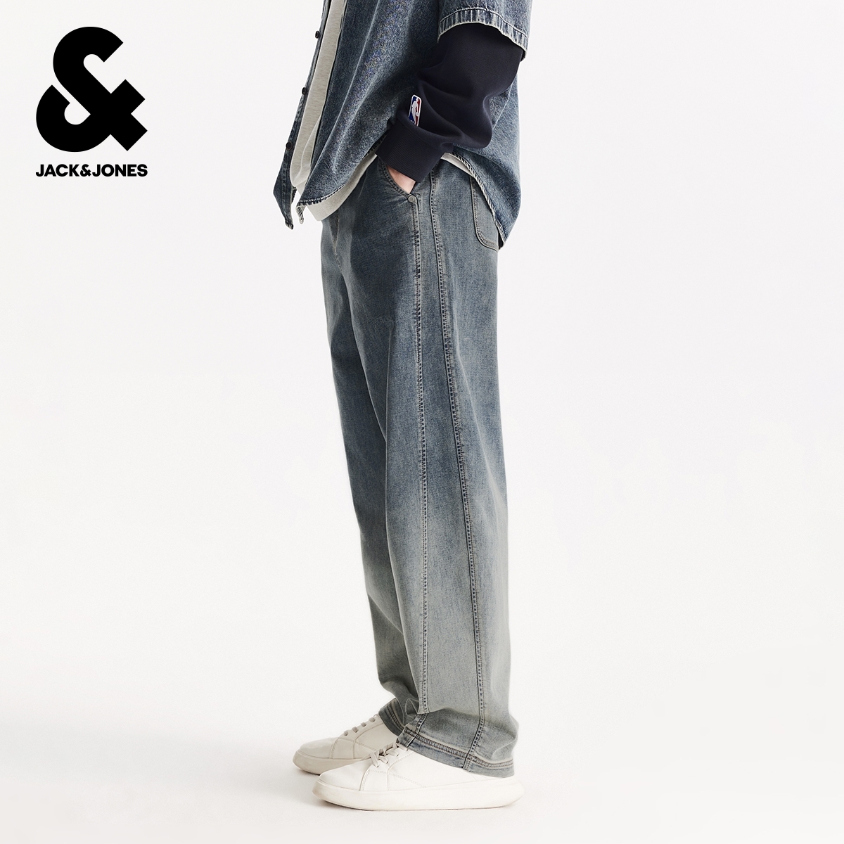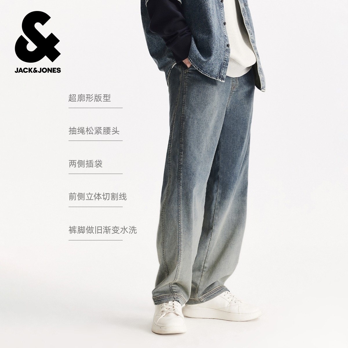 杰克琼斯男装春季牛仔裤长裤子时尚百搭渐变做旧水洗休闲超廓形