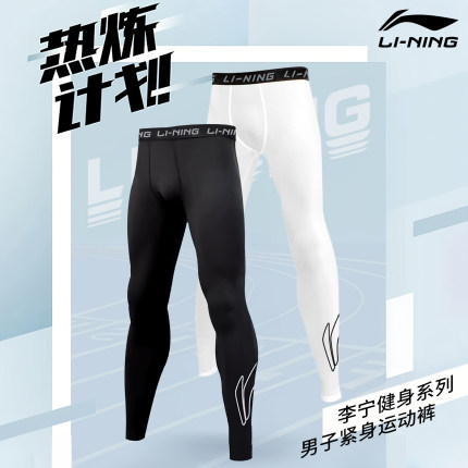 李宁运动紧身裤男跑步压缩裤高弹