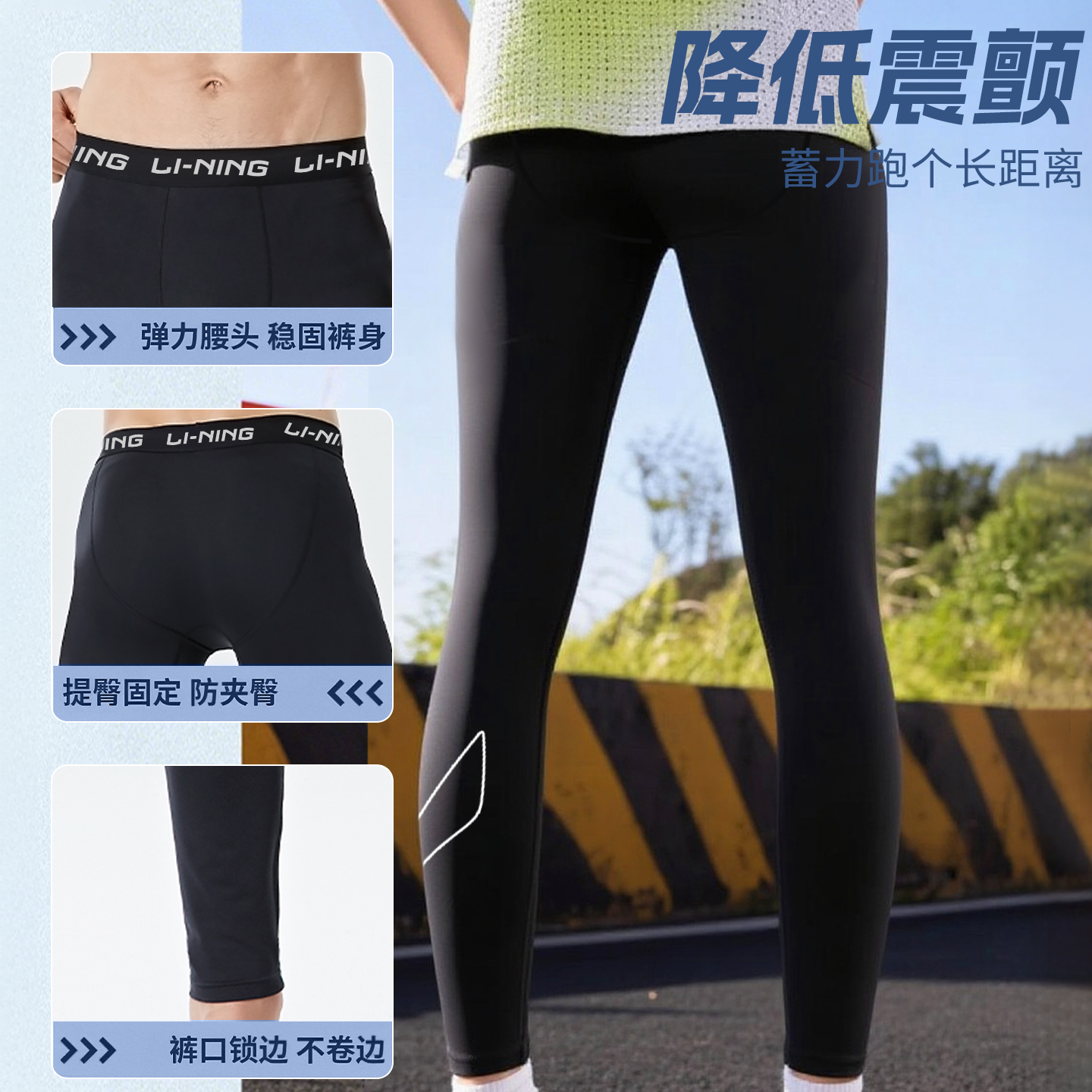 李宁运动紧身裤男跑步压缩裤高弹训练长裤速干打底健身马拉松田径