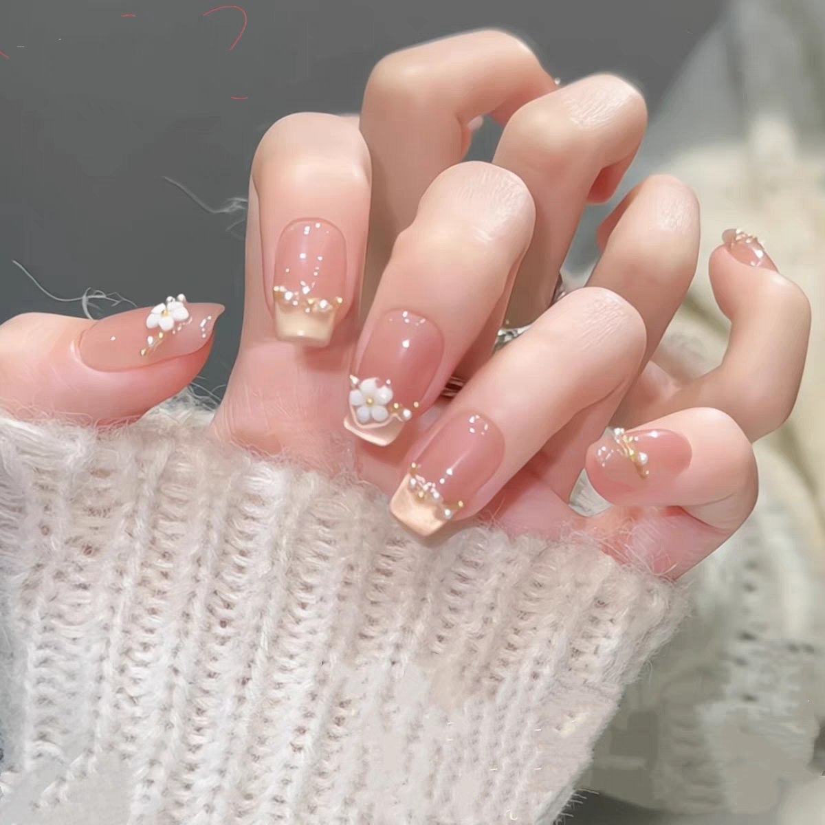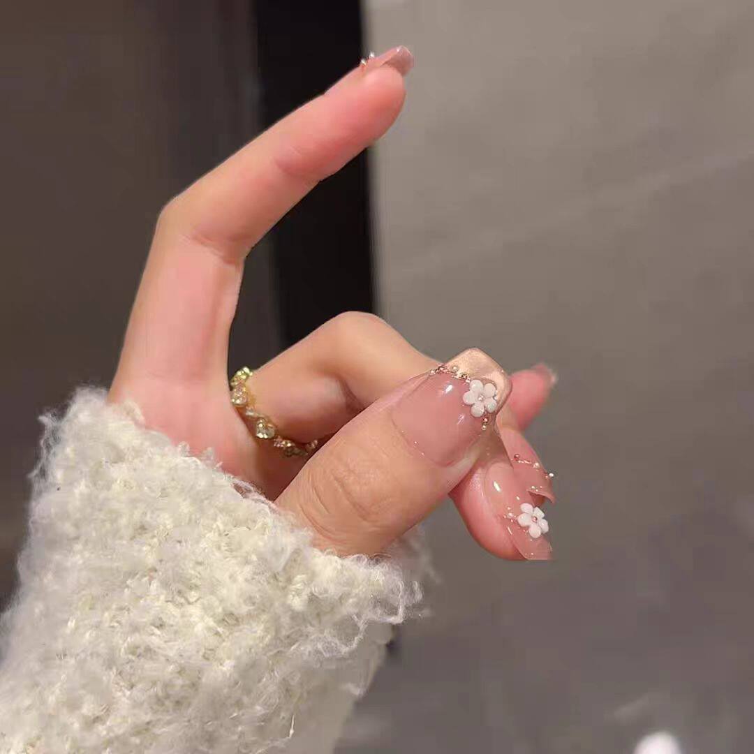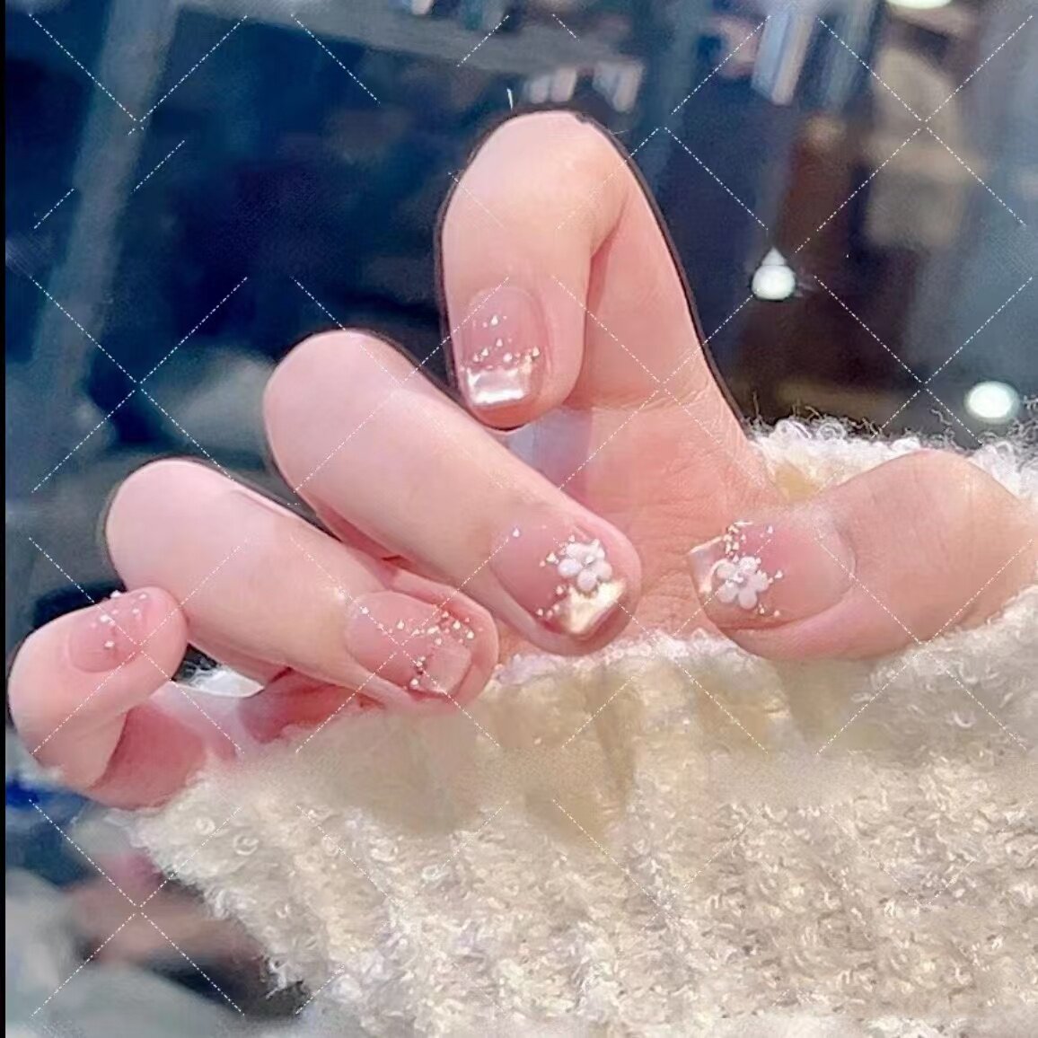 七里香纯手工穿戴甲短款猫眼美甲贴片可拆卸假指甲高级感显白小花