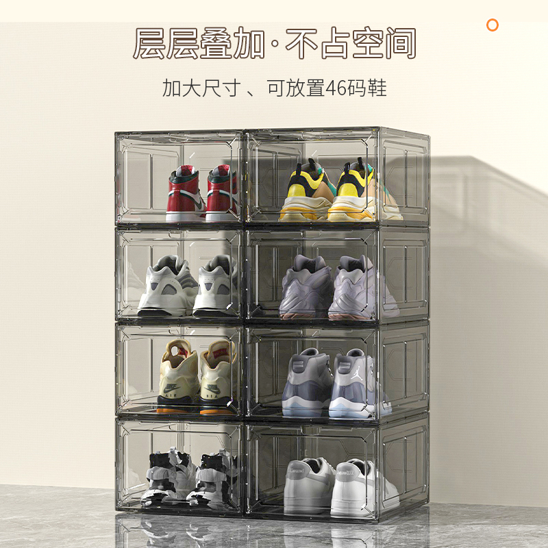 亚克力高透鞋盒透明翻盖防尘防潮鞋子收纳盒加厚耐用鞋柜磁吸鞋架