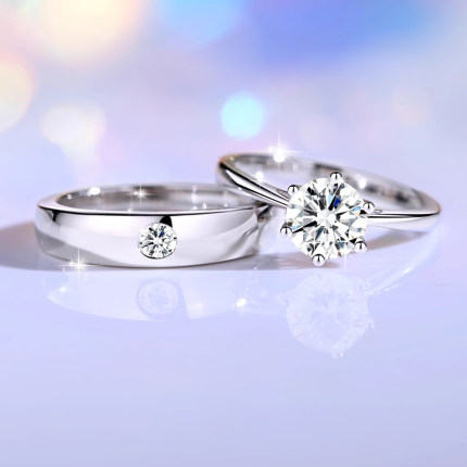 DR情侣对戒纯银999一对莫桑石钻戒求婚结婚戒指生日礼物送男女友