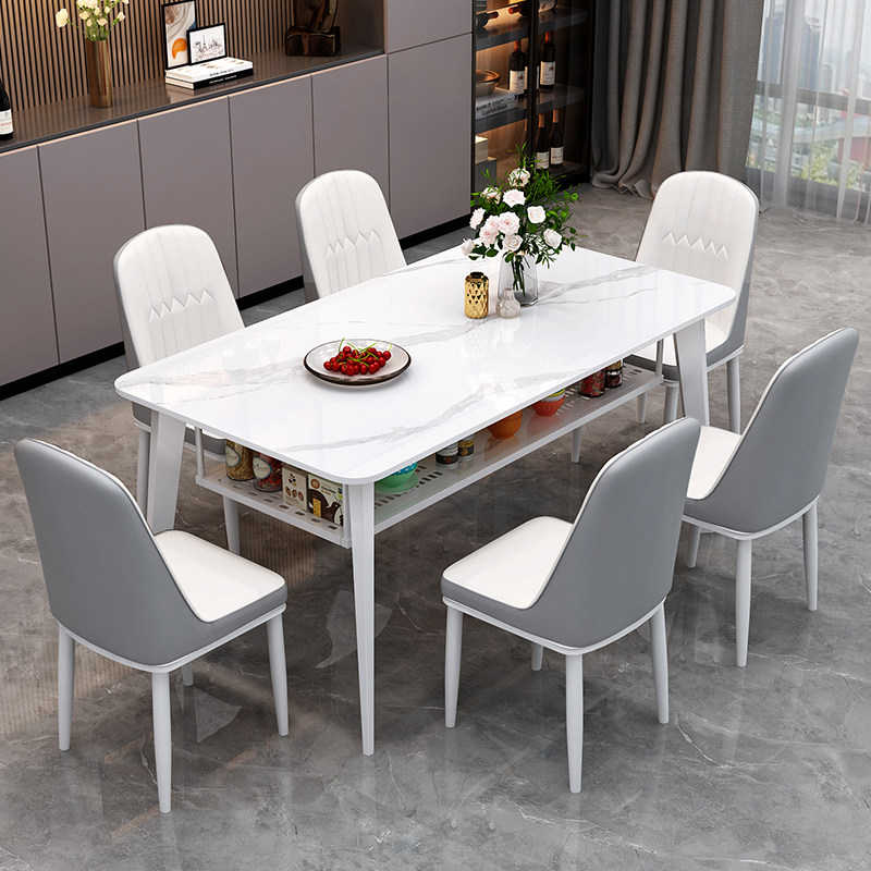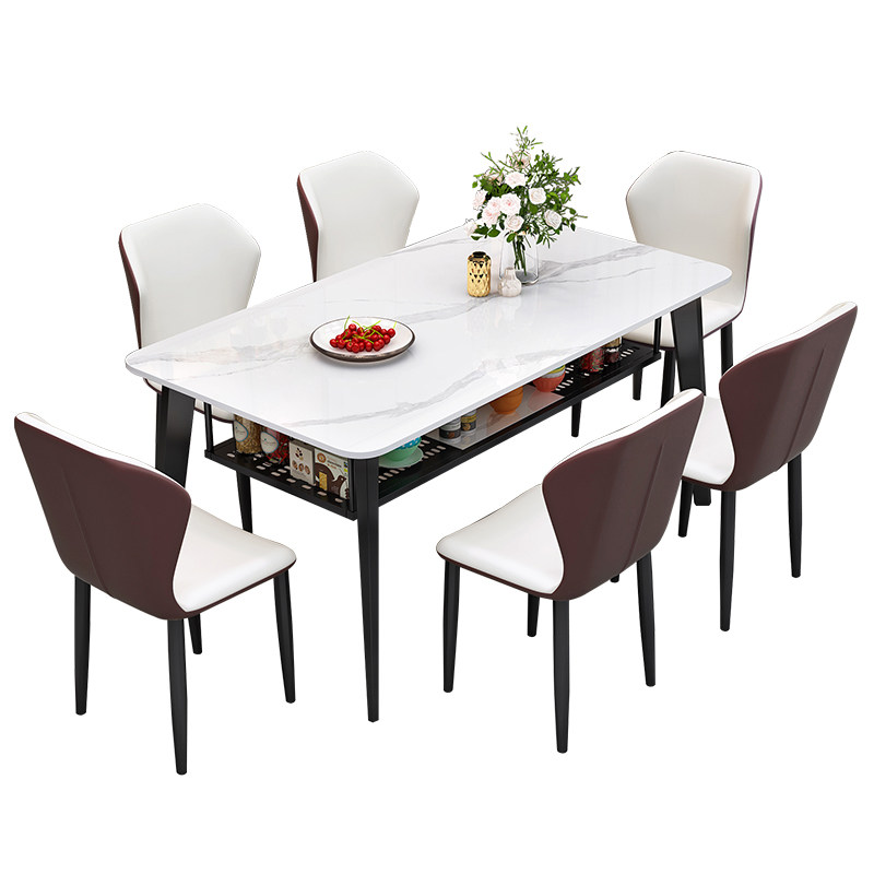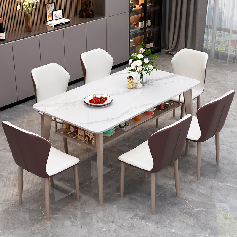 斯帝罗兰轻奢岩板双层餐桌椅组合简约小户型储物餐桌家用长方形大