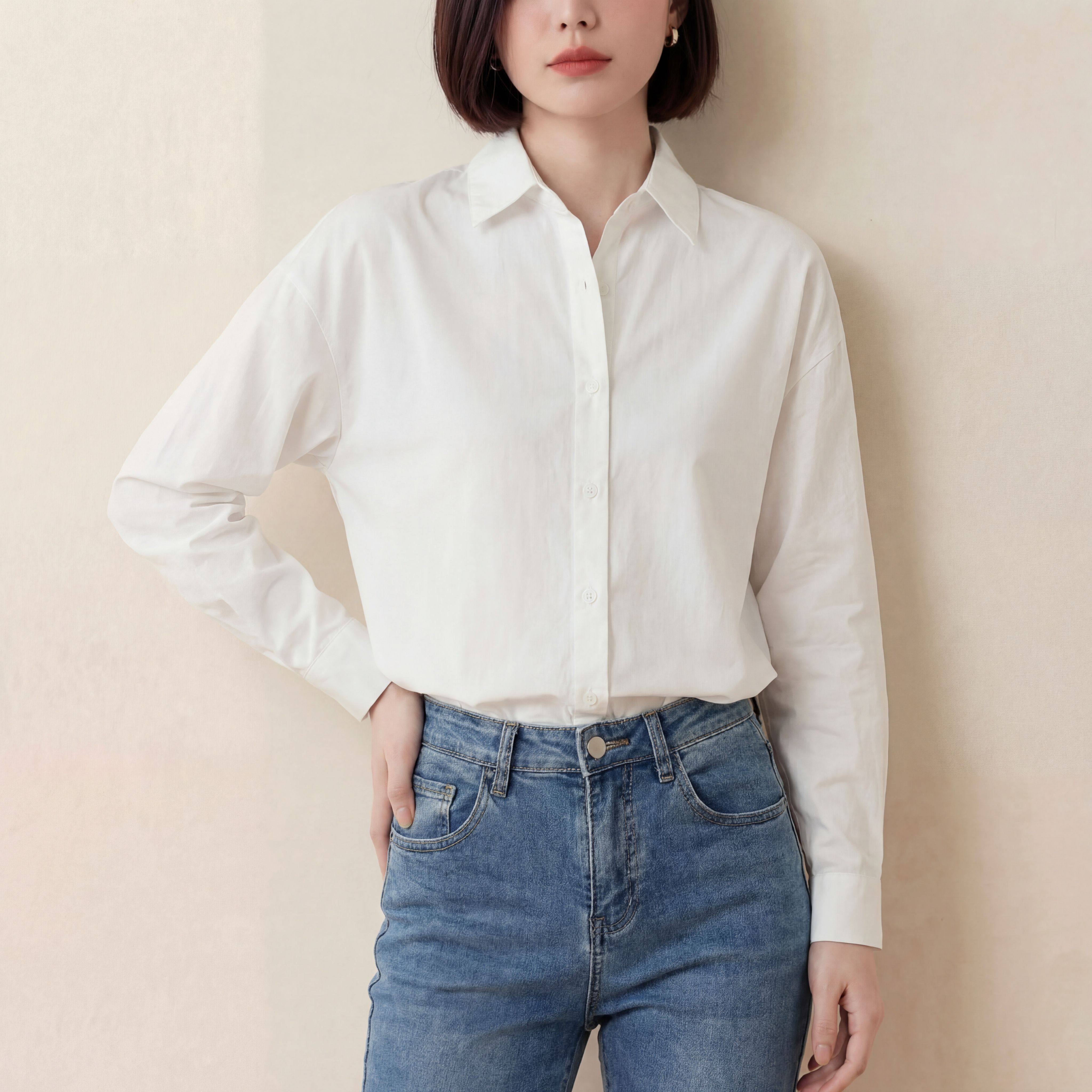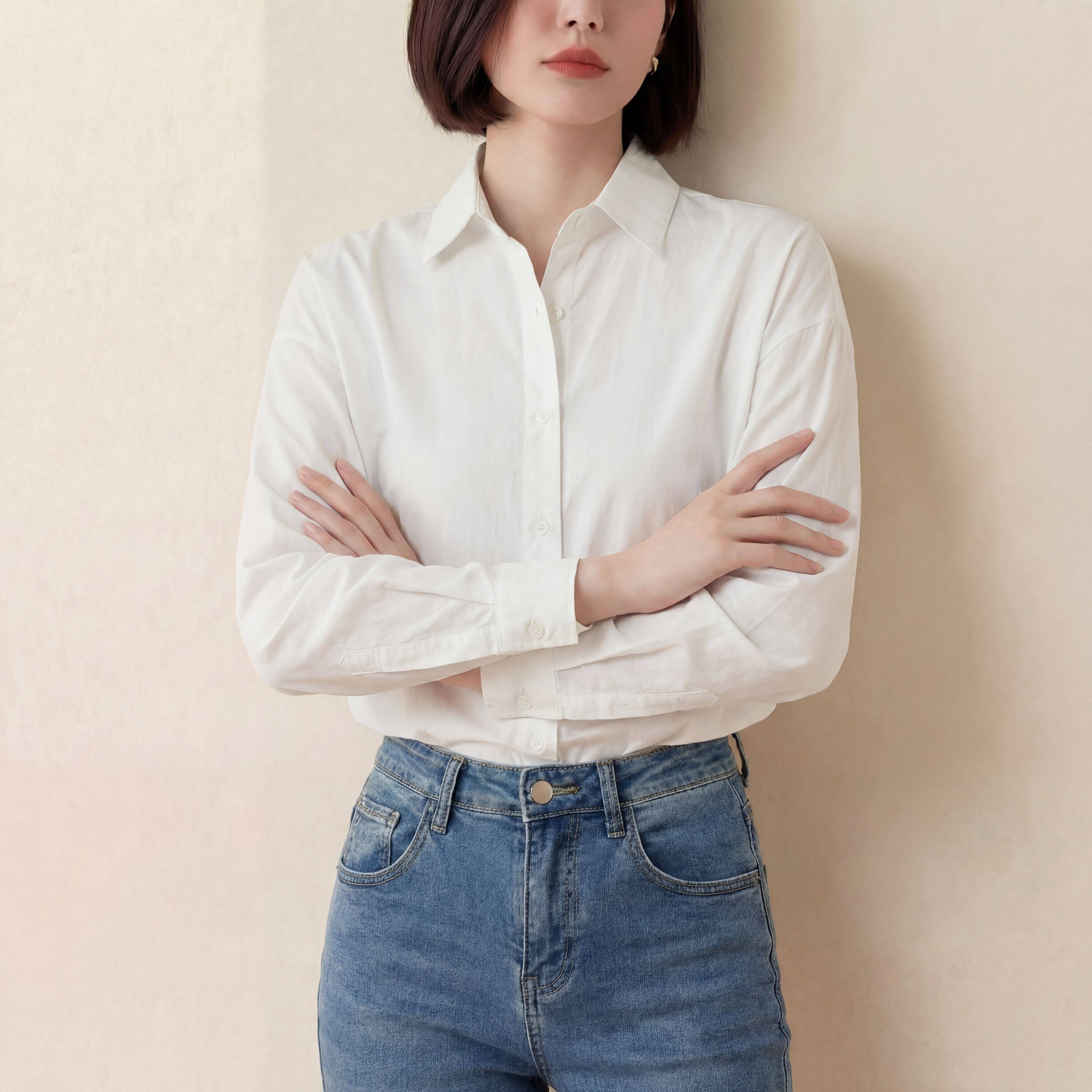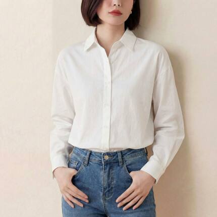 纯棉白色衬衫女春秋新款上衣职业通勤白衬衣宽松显瘦小衫简约百搭