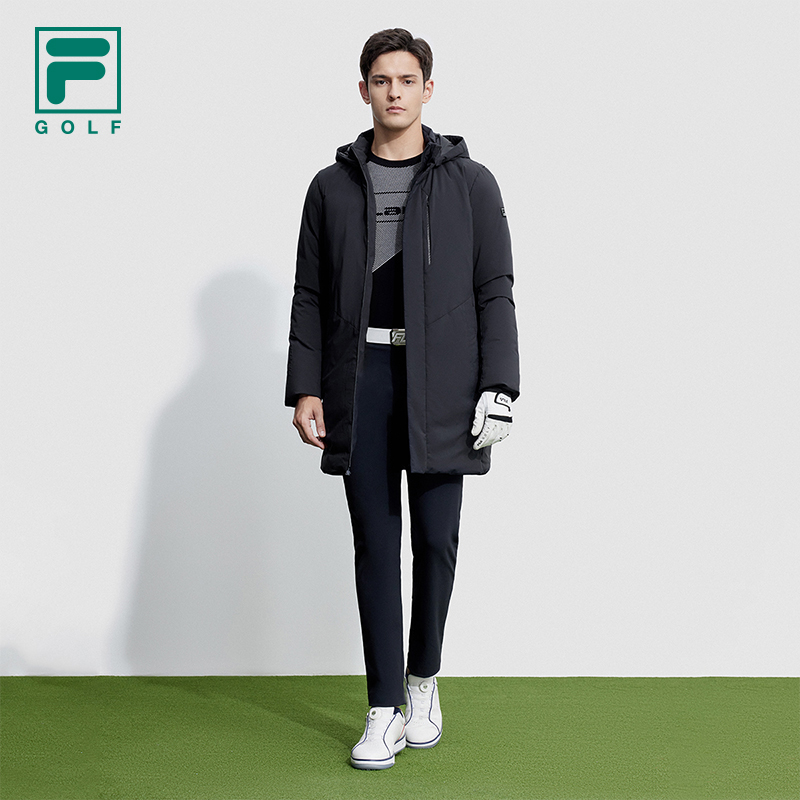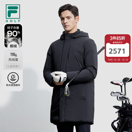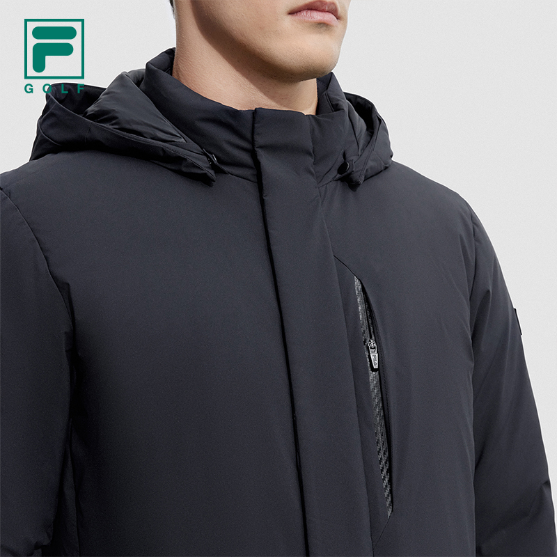 鹅绒|FILA斐乐男中长款羽绒服冬保暖高尔夫运动轻薄可拆卸帽外套