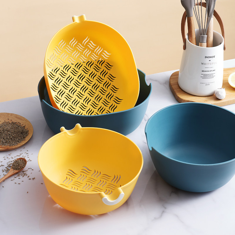 双层沥水篮网红水果盘厨房多功能洗菜盆神器家用客厅收纳塑料篮子