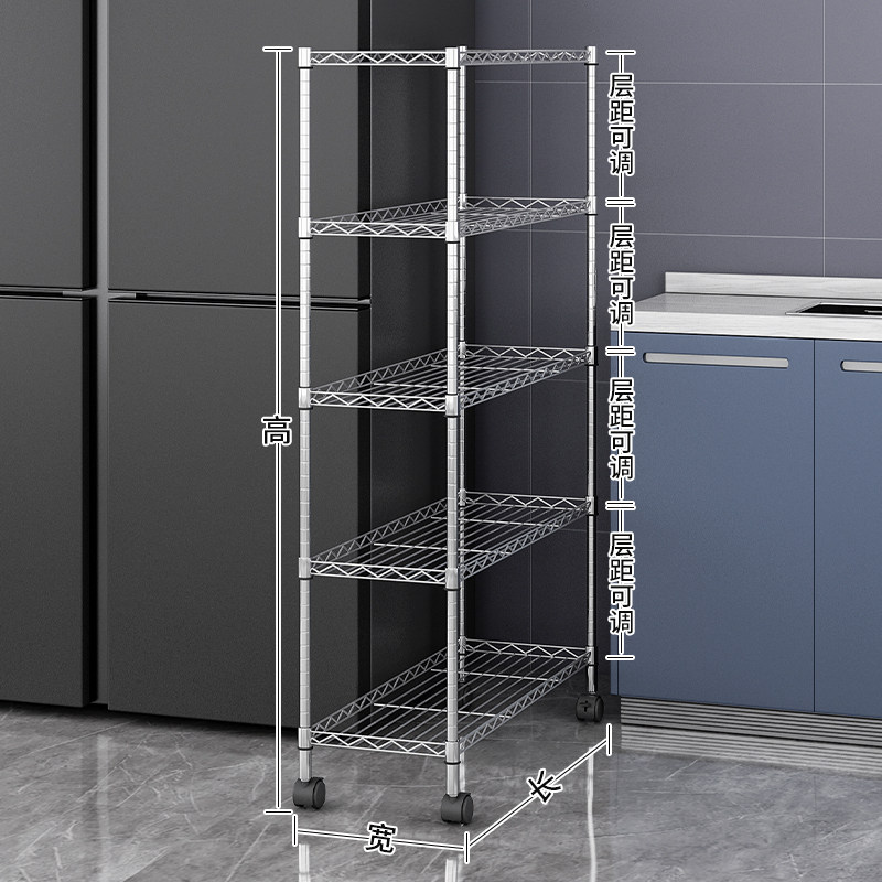 厨房夹缝置物架落地储物架多层可移动桌面收纳架家用锅碗架可调节