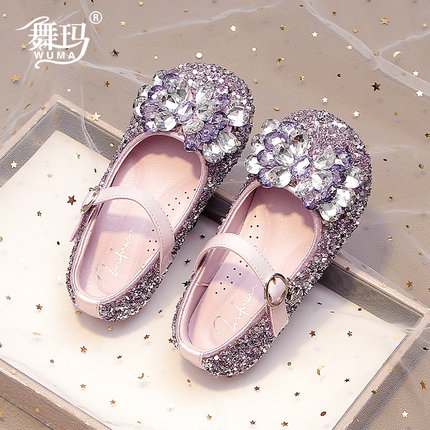 舞玛女童鞋子儿童时装小皮鞋2026新款春秋季女孩演出平底水晶单鞋