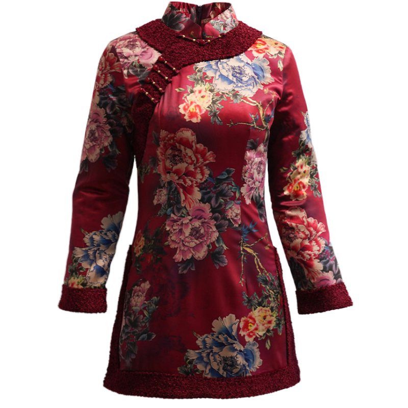 红色加厚拜年旗袍复古民族风唐装