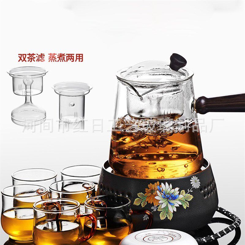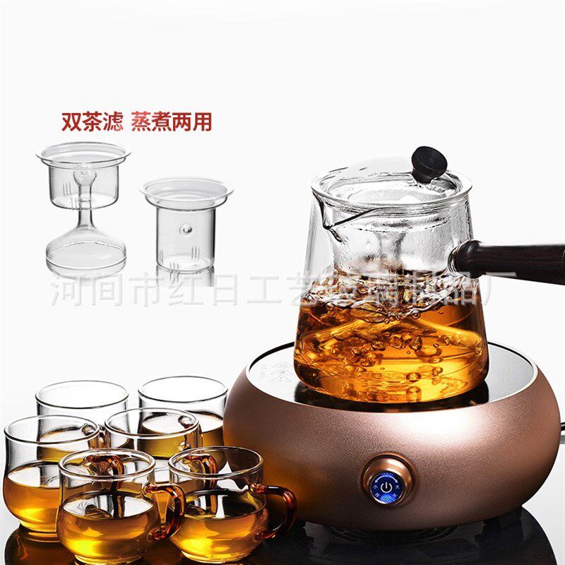 速发耐热玻璃蒸茶把透明红茶黑陶蒸汽泡茶侧壶壶家用电茶炉煮茶器