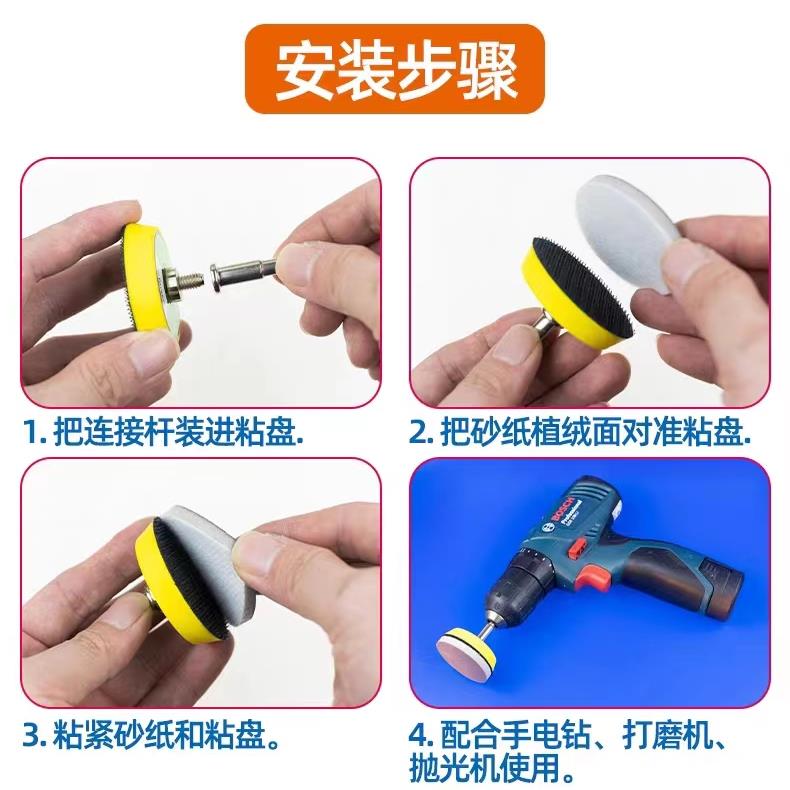 六角柄电动砂纸打磨盘电动起子锂电钻用砂纸抛光电动螺丝起子打磨