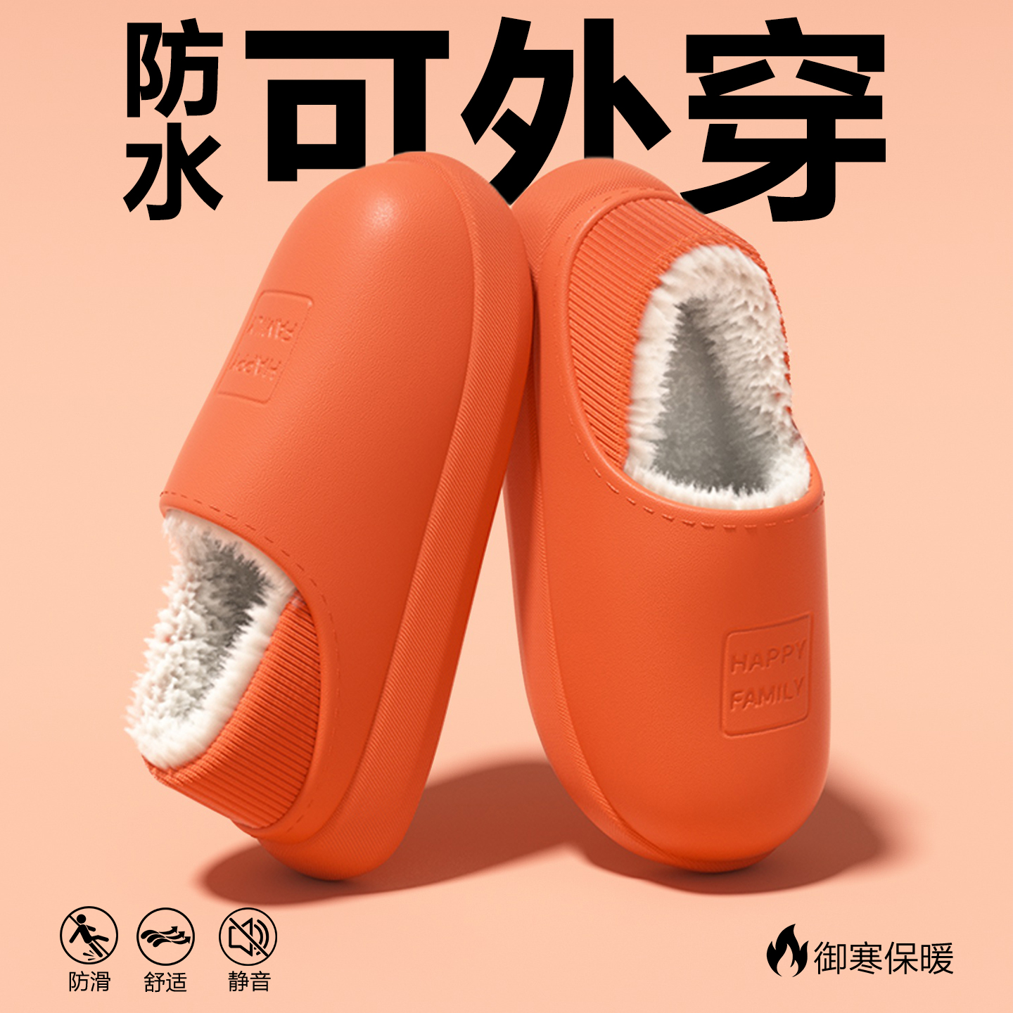 包跟棉拖鞋女防水秋冬季加厚底棉鞋男士情侣外穿保暖月子鞋10月份
