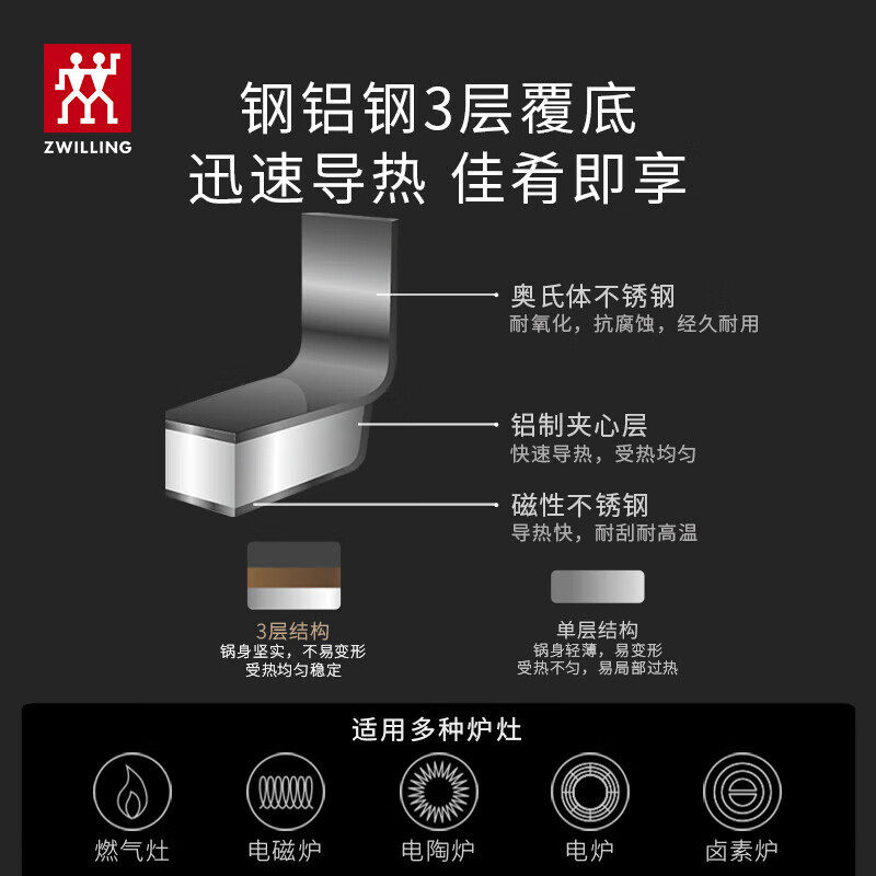 德国双立人汤锅蒸笼家用28cm大容量不锈钢锅具炖锅蒸锅套装新款