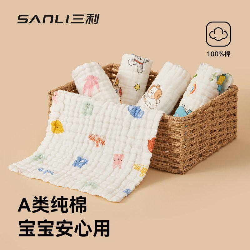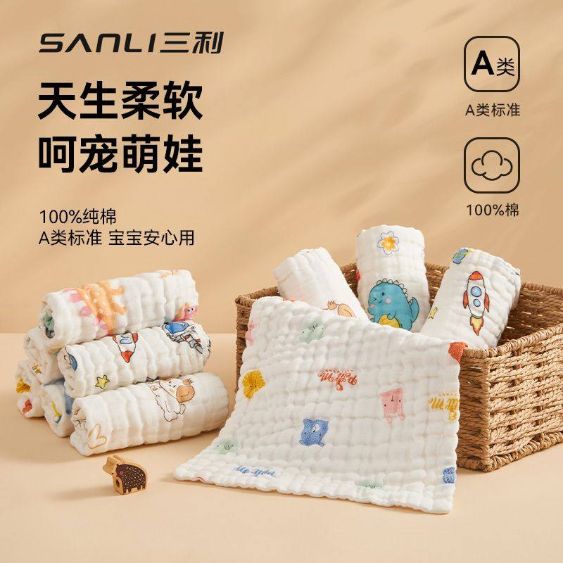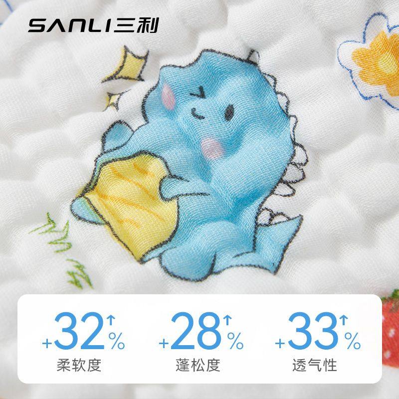 3条装三利婴幼儿童巾A类纯棉不掉毛6层纱布亲肤可爱毛巾宝宝专用