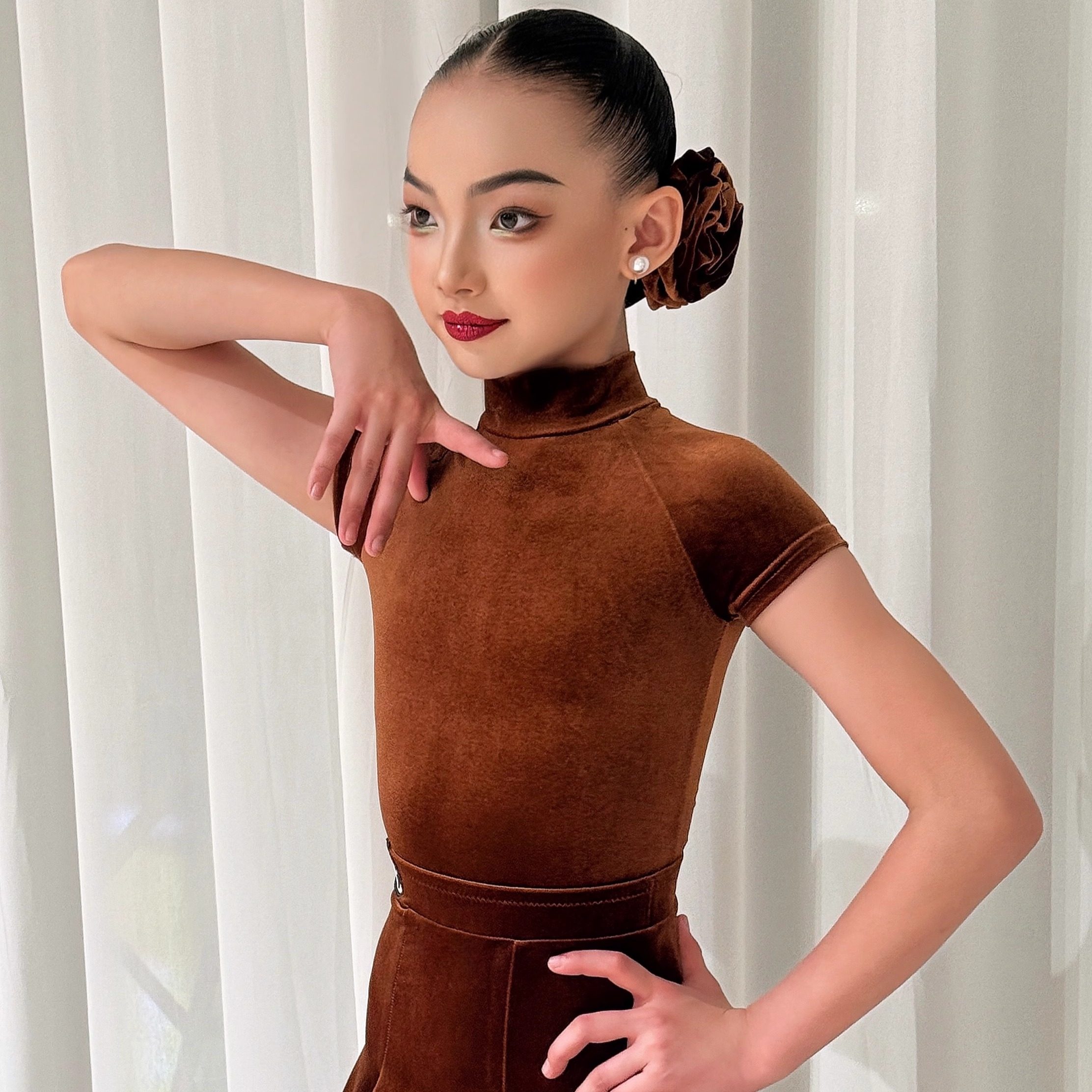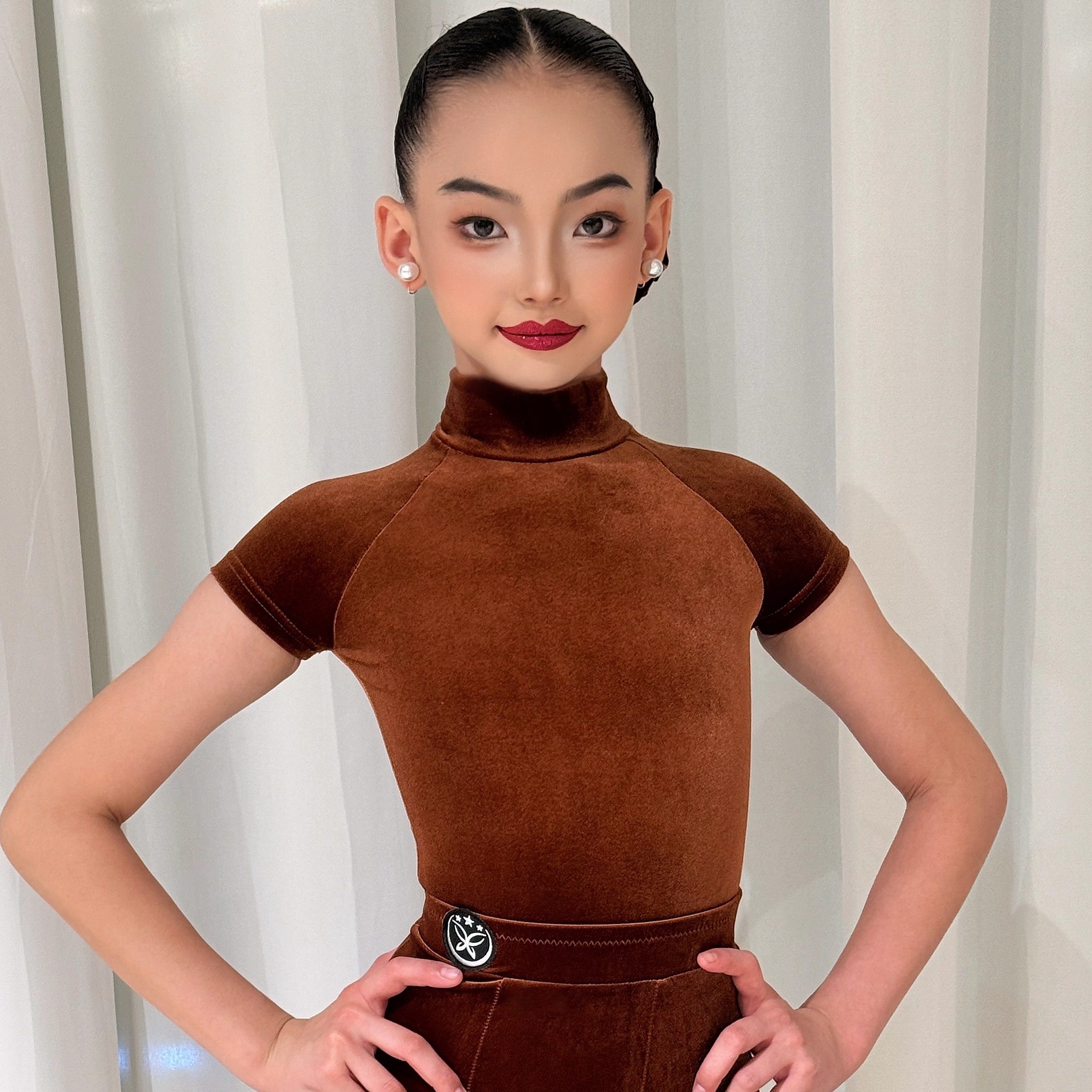 星辰舞服「韩国绒」松露巧克力短袖拉丁舞规定赛服