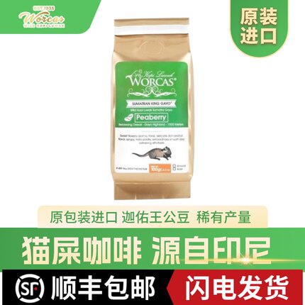印尼进口WORCAS迦佑王野生猫屎咖啡豆粉peaberry正品手冲醇厚低酸
