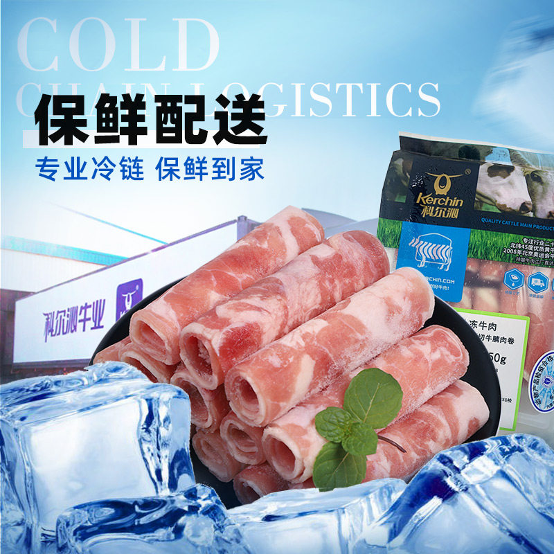 科尔沁原切牛腩肉卷5袋新鲜雪花纹牛肉卷肥牛片火锅烧烤食材包邮