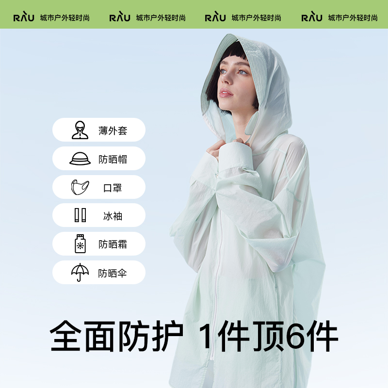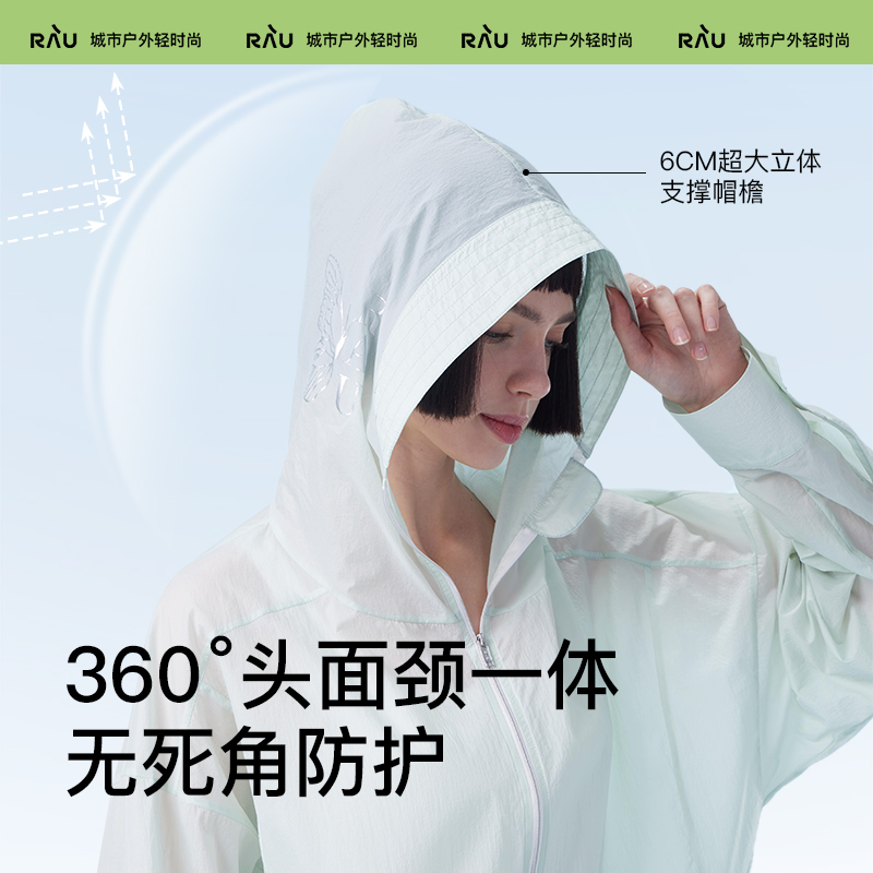 RAU防晒衣女夏季薄款防紫外线连帽外套防晒服冰丝透气户外皮肤衣
