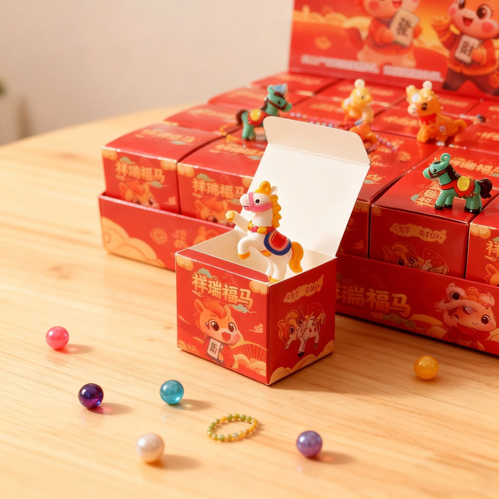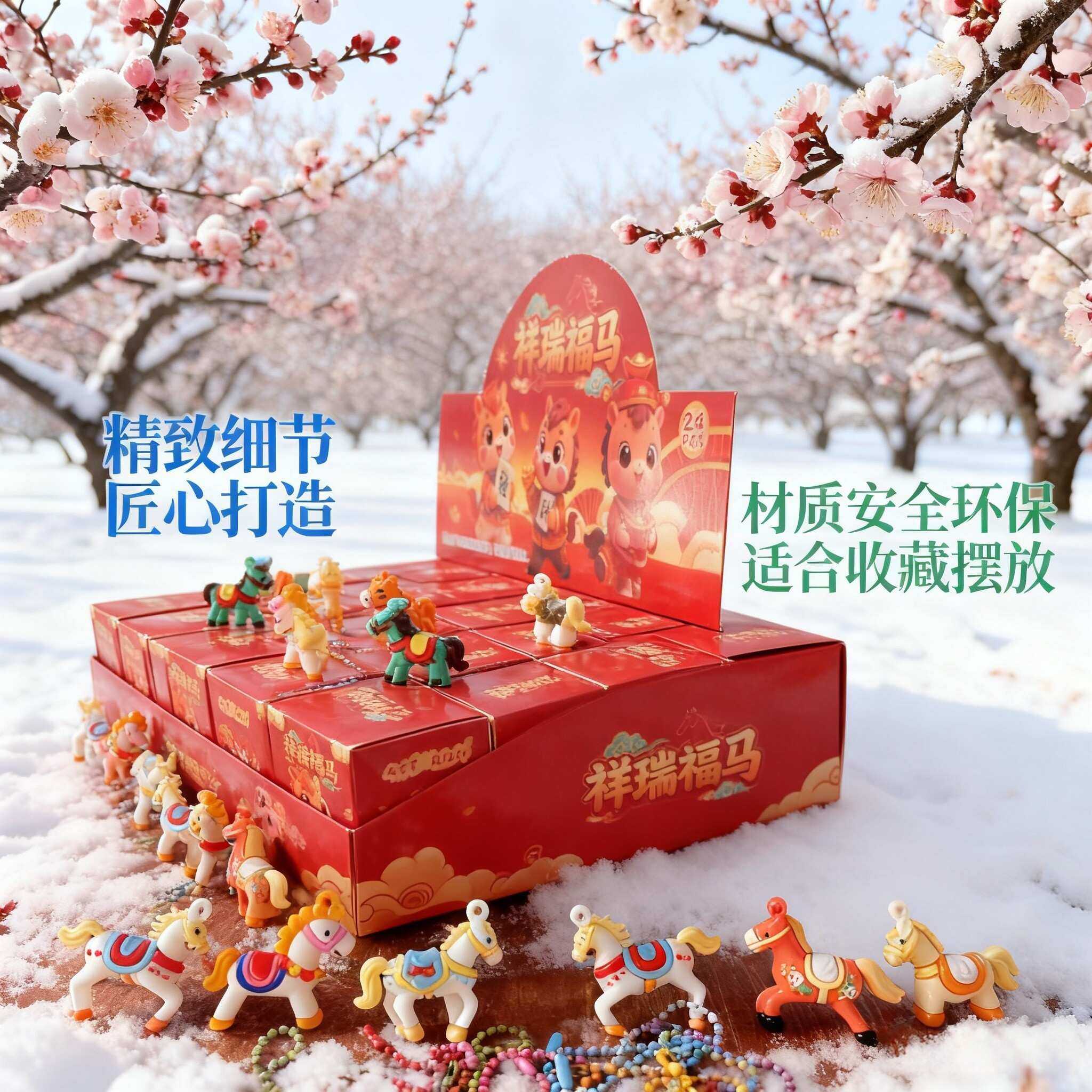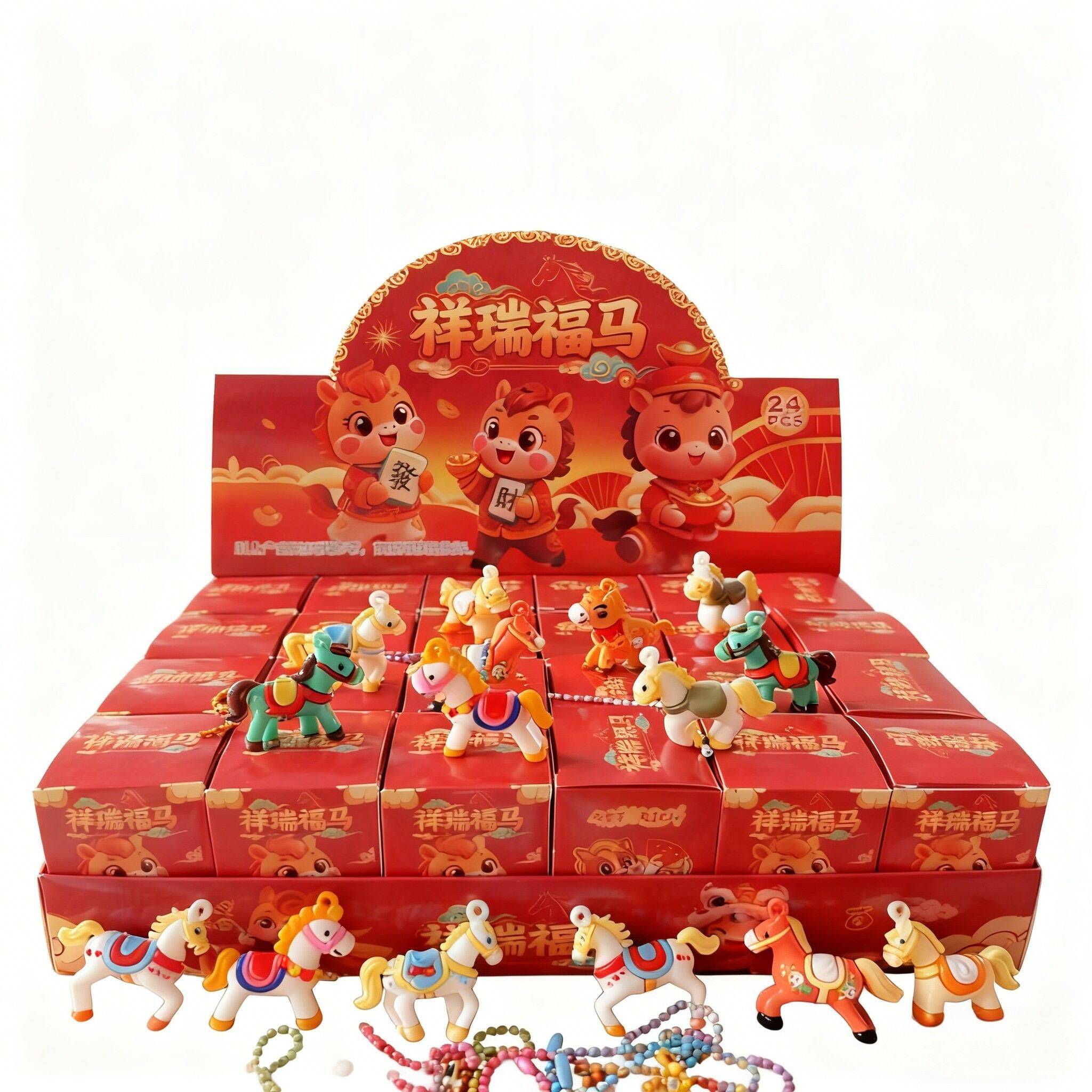 马年盲盒新年24盒装吉祥物公仔盲盒钥匙扣挂件儿童礼物红色卡通