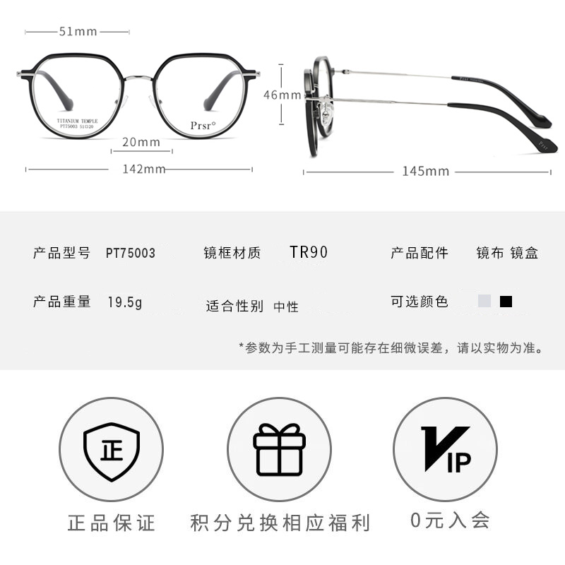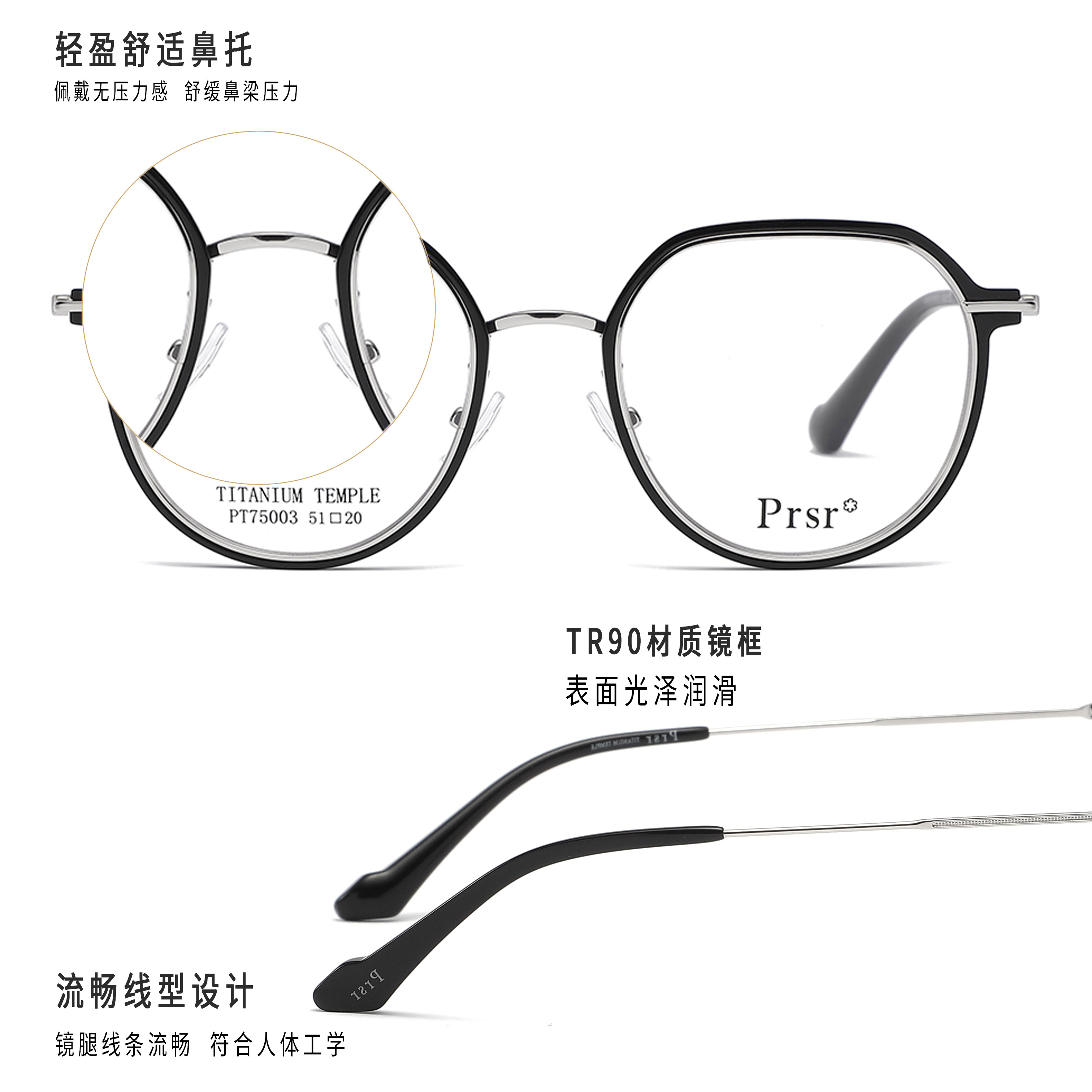 帕莎全框透明素颜眼镜大脸圆框可配度数近视眼镜女PT75003