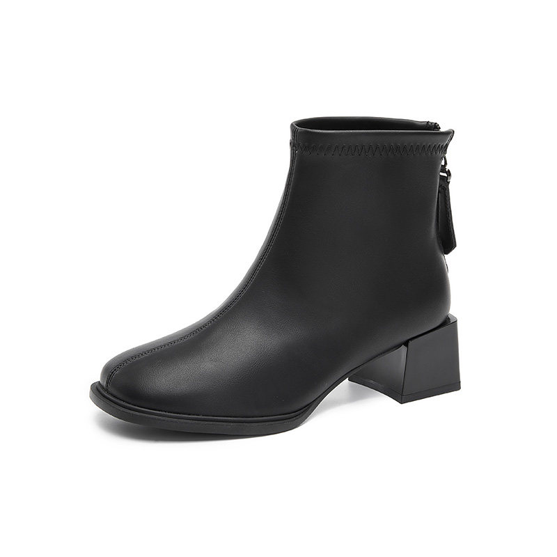 大东简约女短靴粗跟中跟方头