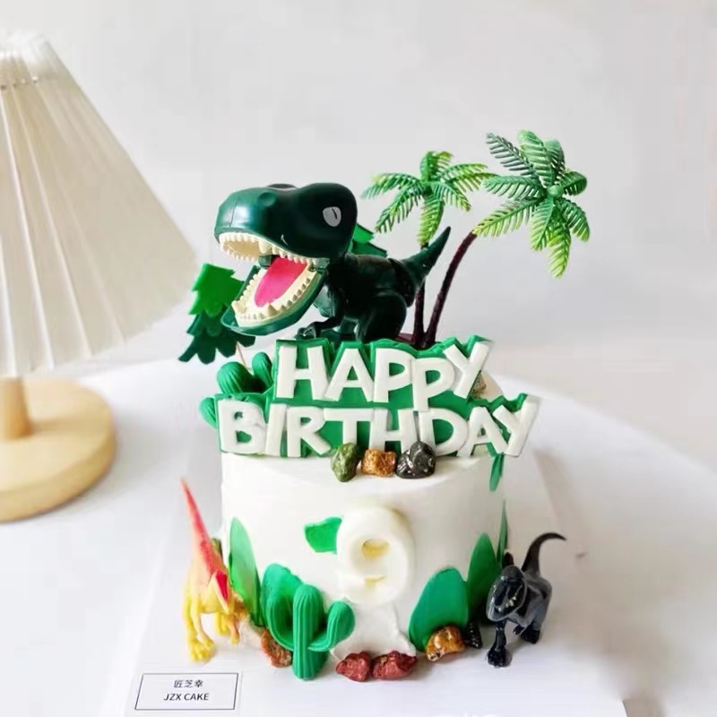 恐龙蛋糕装饰摆件暴龙霸王龙绿色小恐龙宝宝男孩儿童生日插件插牌