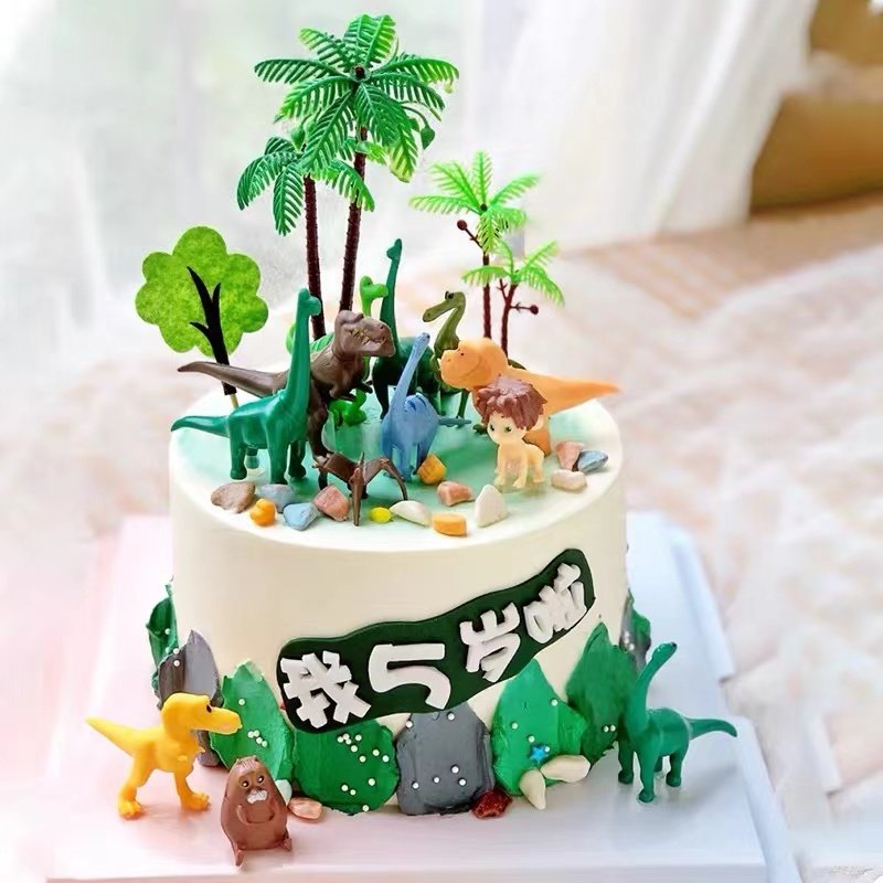 恐龙蛋糕装饰摆件暴龙霸王龙绿色